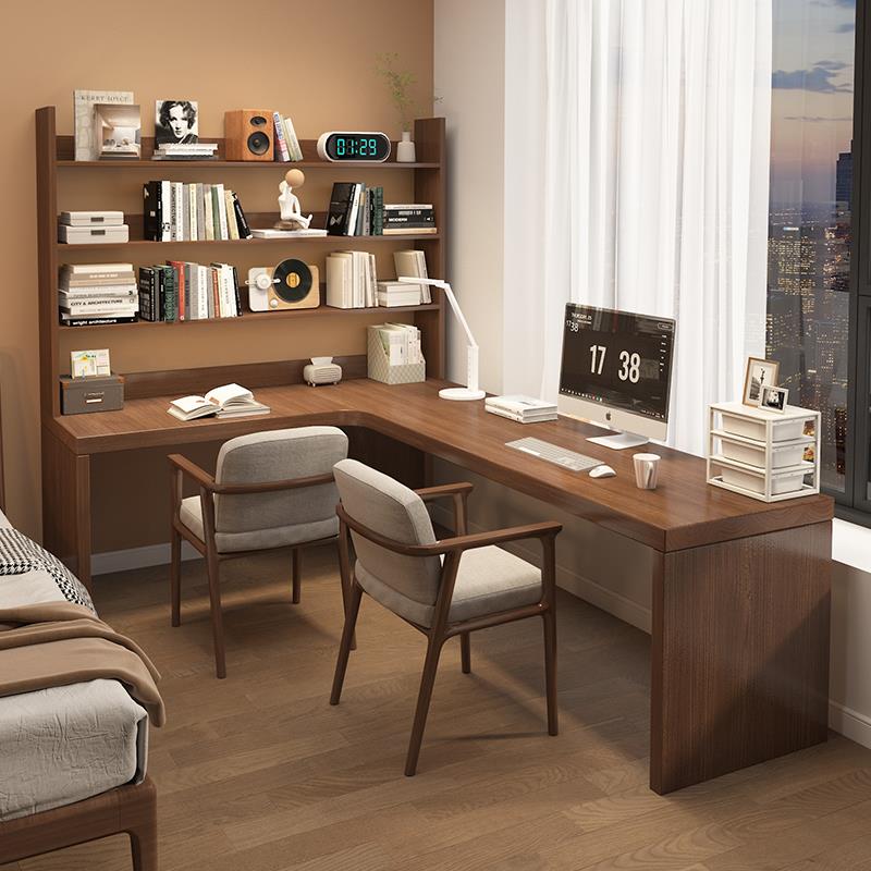 全实木转角书桌书柜一体家用办公卧室L型拐角台式电脑桌书架组合 - 强达百货官营店