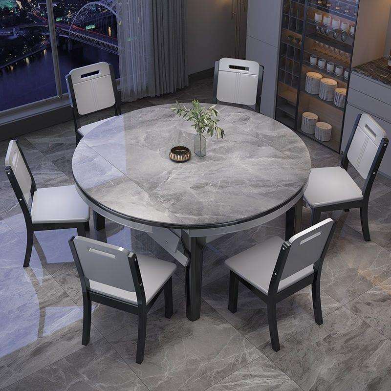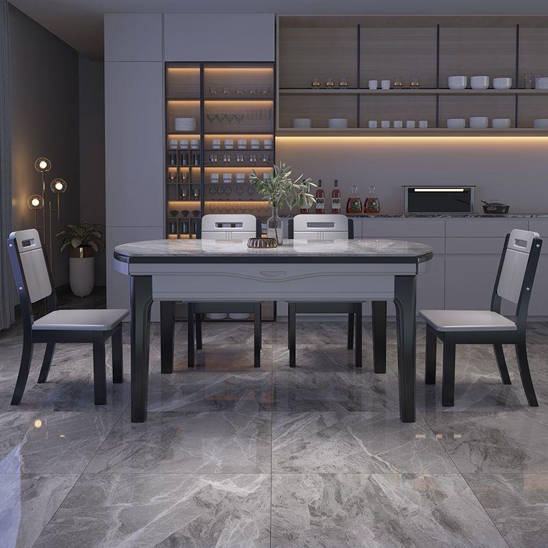 意式实木岩板餐桌椅组合家用现代客厅多功能可折叠长方形可变圆桌 - 丰裕都商贸城的小店22