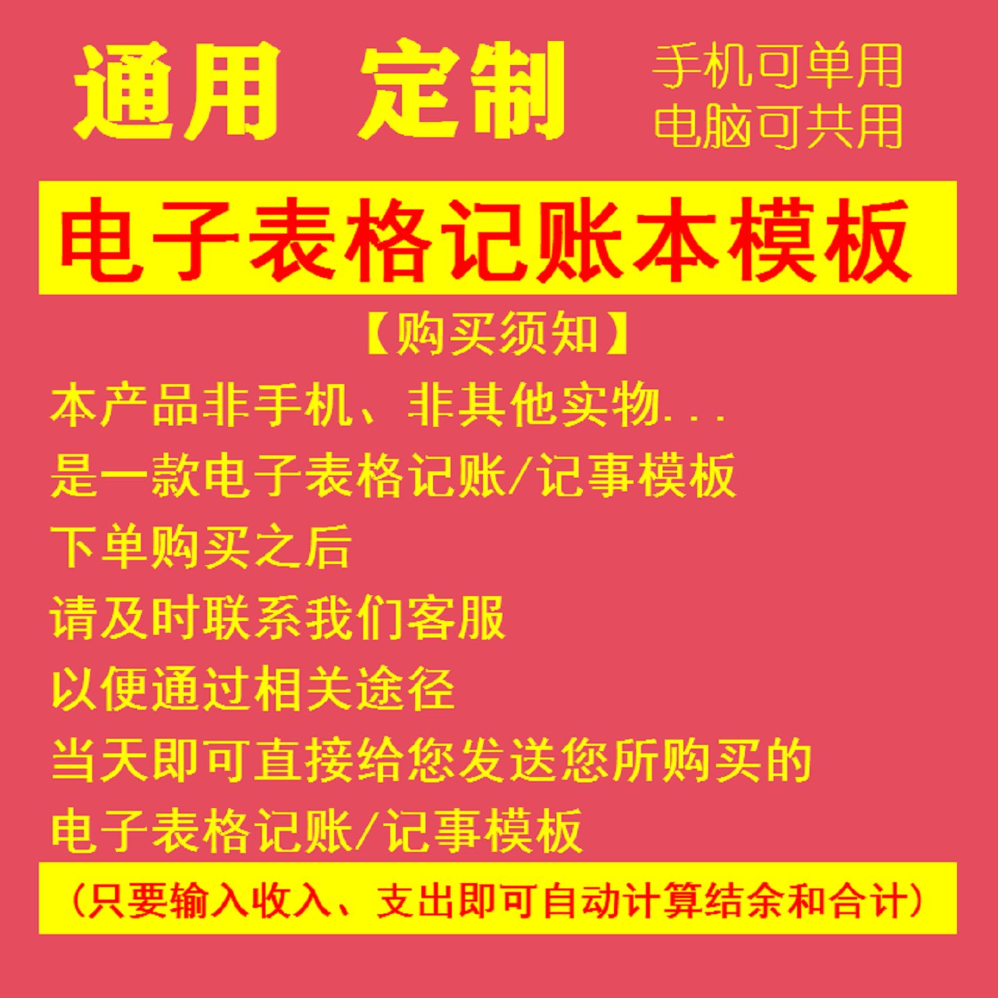 一表通手机电子表格现金收支记账记事本自动结余合计明细手账新款