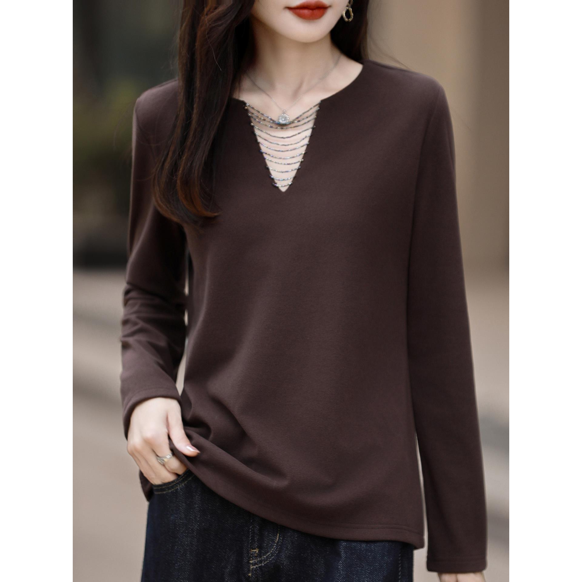 ROUMIKL通勤高端设计感双面磨毛打底衫女25秋冬新款洋气内搭保暖 - 潮流走轻奢女装