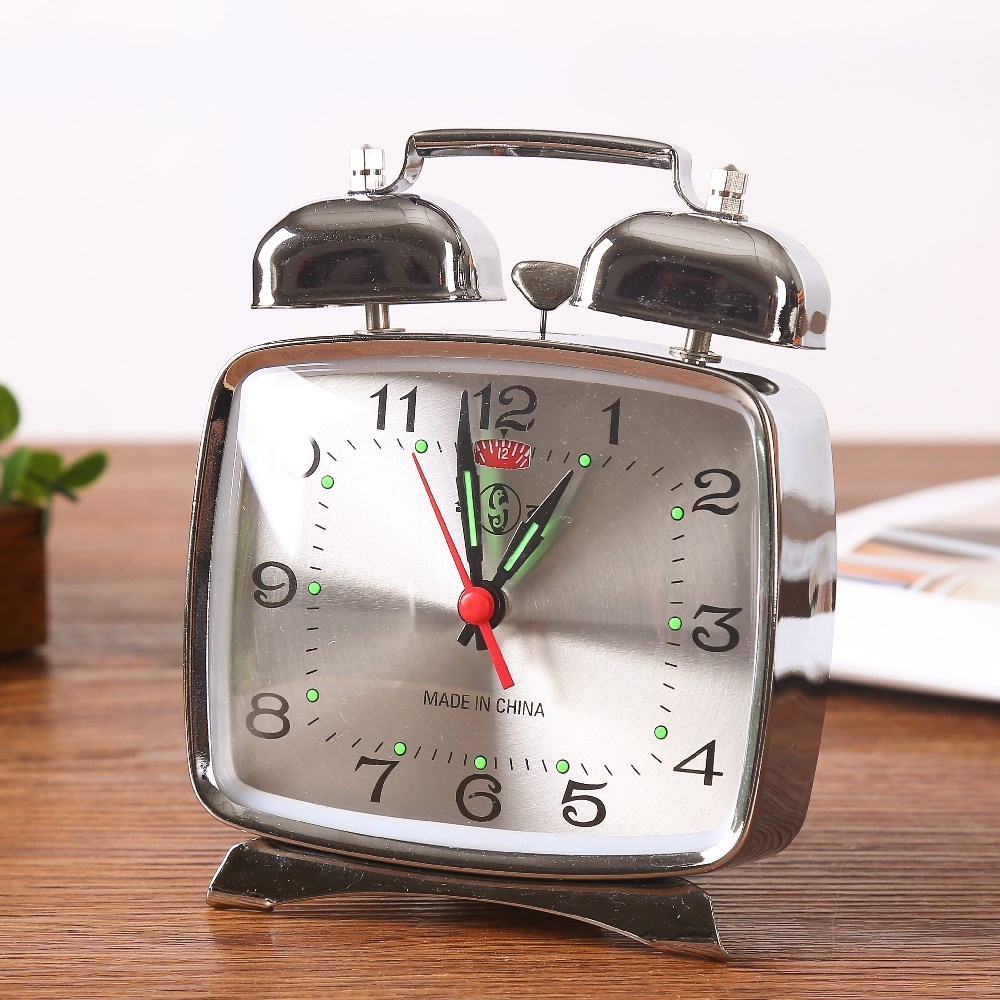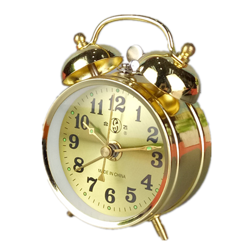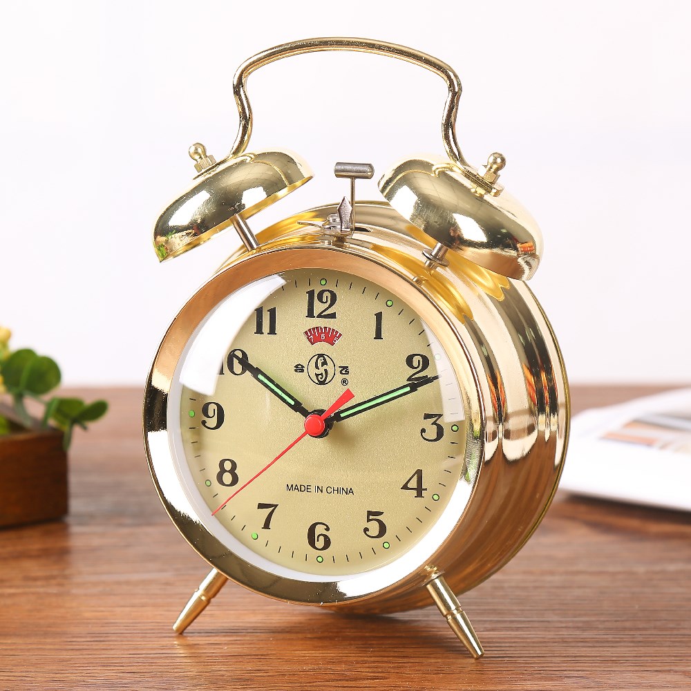 合飞正品机械上劲闹钟复古打铃老式马蹄表超大铃声学生金属钟表