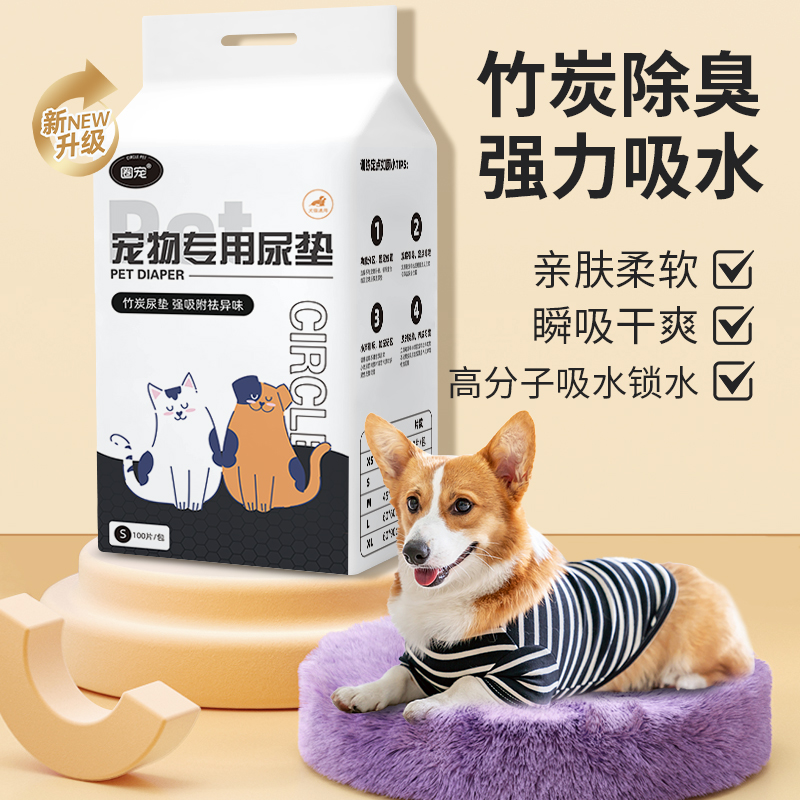 狗狗尿垫尿片加厚竹炭除臭吸水泰迪猫咪生产尿不湿训导加大隔尿垫 - 圈宠宠物生活馆