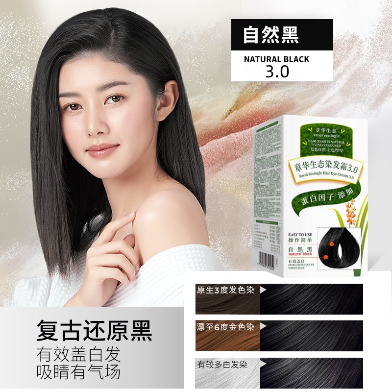 2盒装 章华生态染发霜植物染发剂自然黑棕黑轻松染发膏泡泡染发膏 - 章华品牌直供店