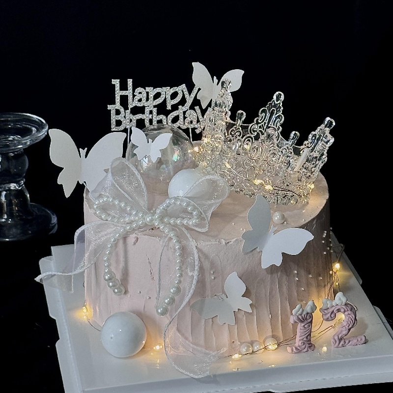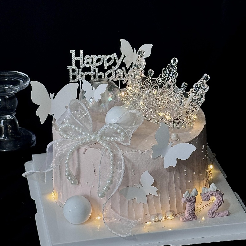 网红新款水晶皇冠蛋糕装饰摆件唯美珍珠蝴蝶节装扮甜品烘焙台插件
