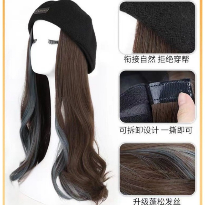 假发女长卷发专用可拆卸魔术贴水波纹大波浪粘贴帽子假发片 - 丝尚假发企业店