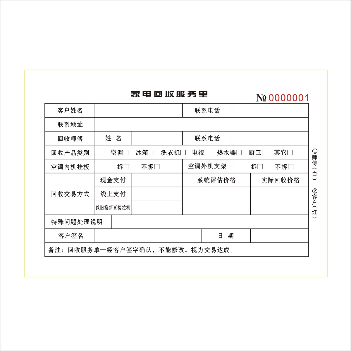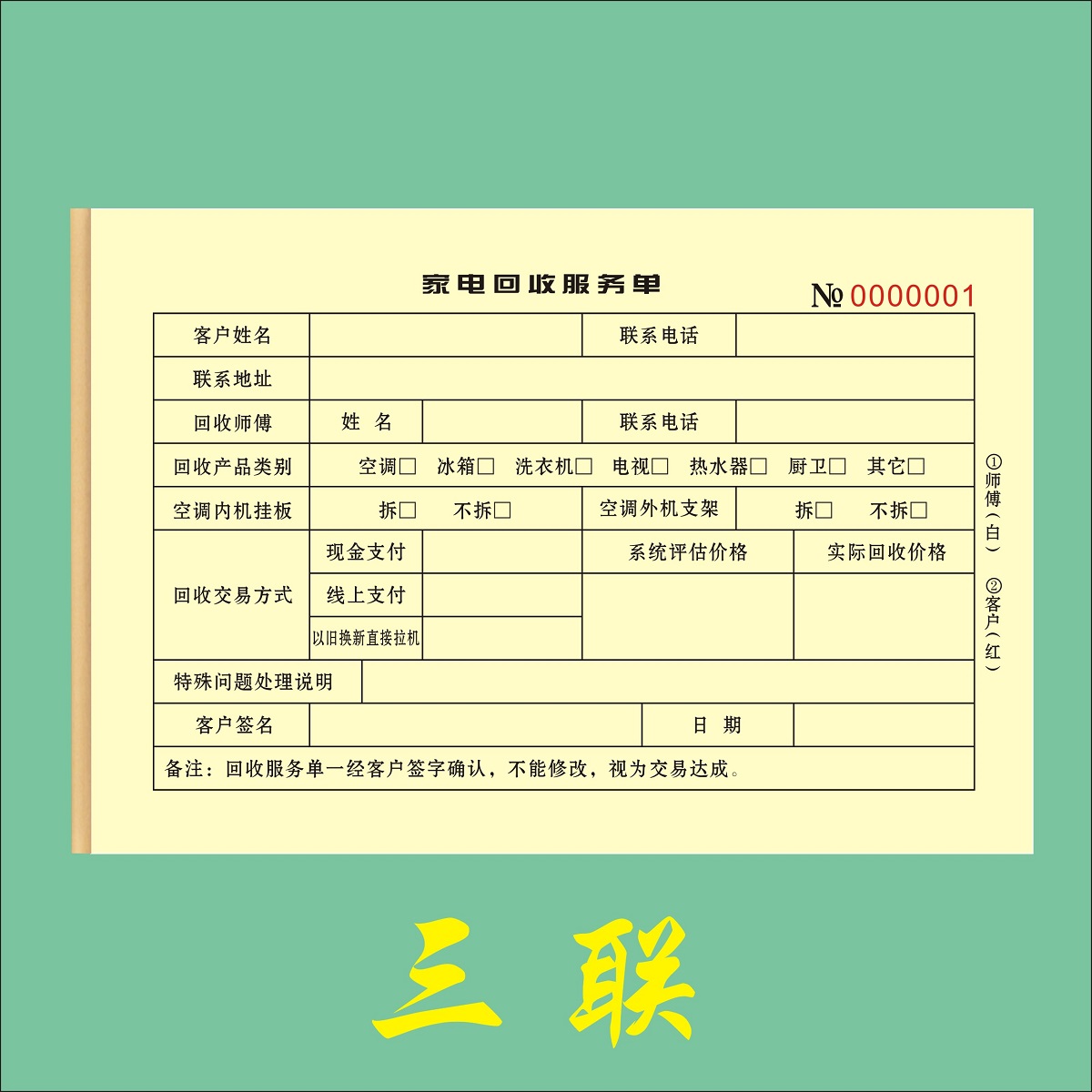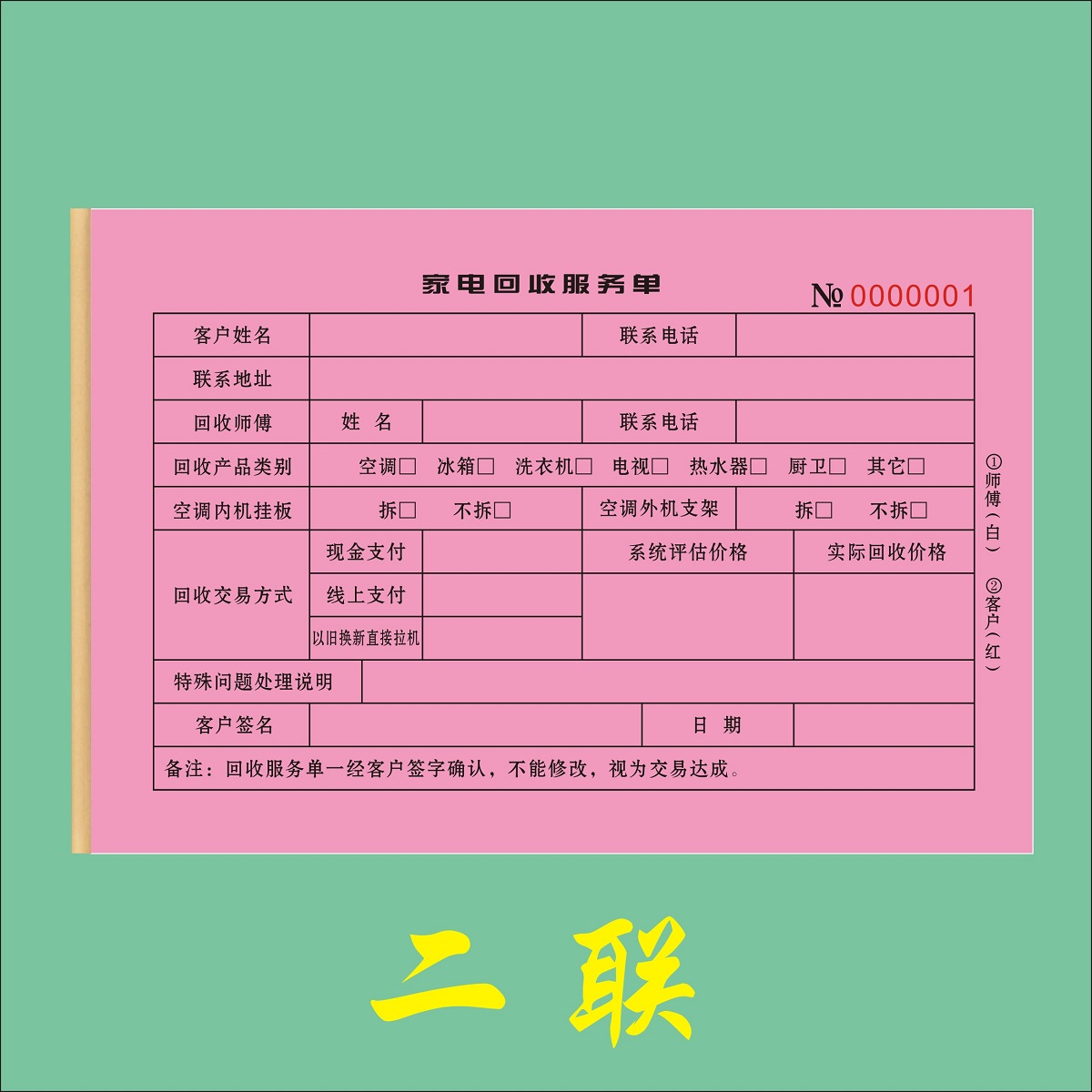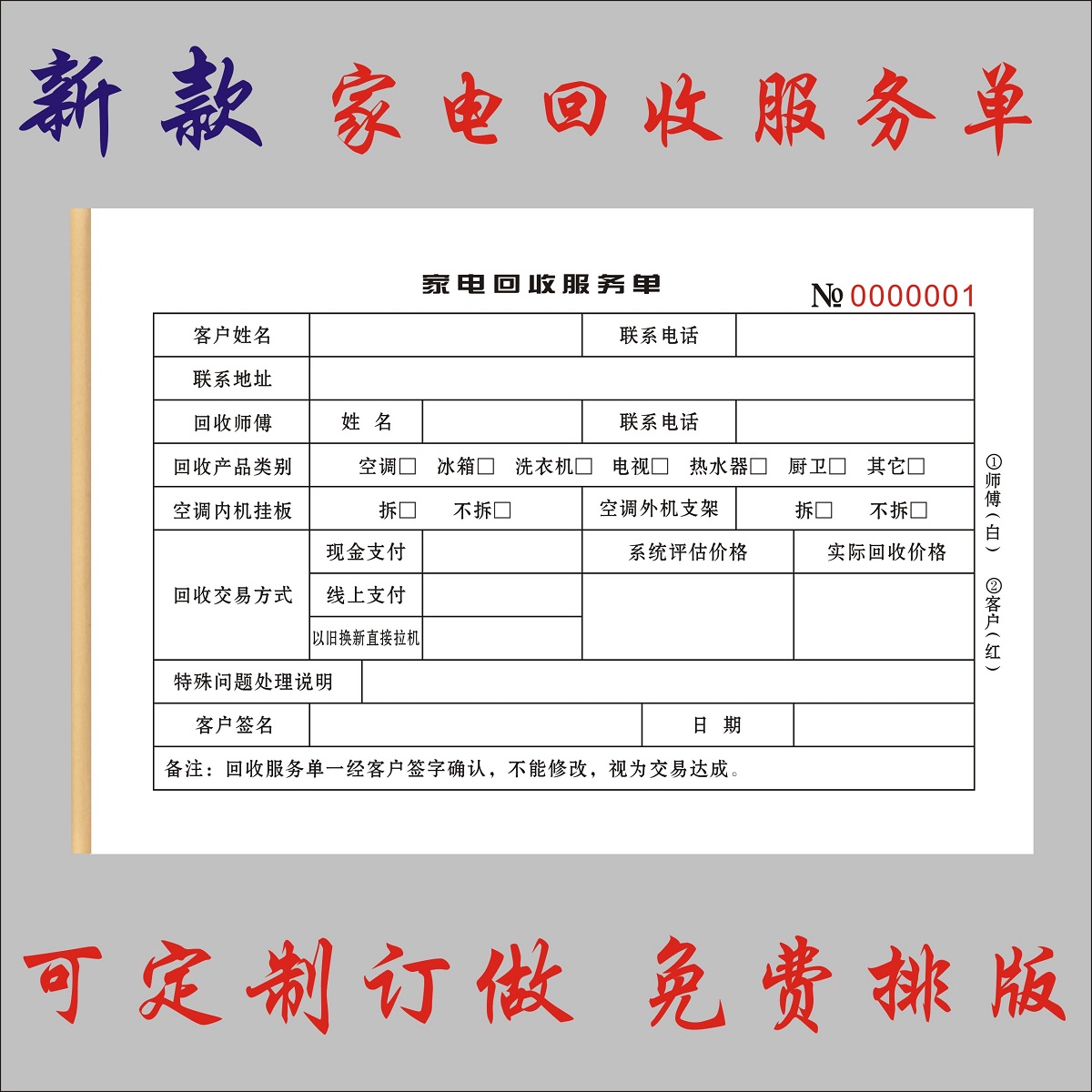 家电回收服务单定制二联二手物品寄卖登记表订做三联旧物回购收据 - 羽晨实体印刷厂