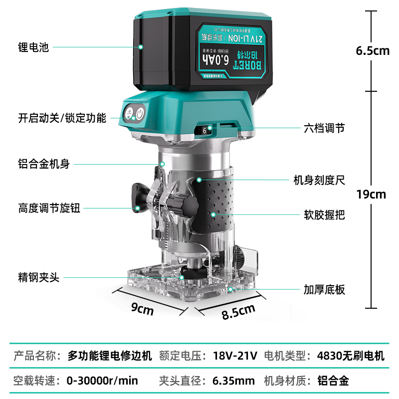 伯尔特A3无刷锂电修边机木工家用多功能开槽雕刻铝塑板开孔雕刻机 - 伯尔特五金电动工具