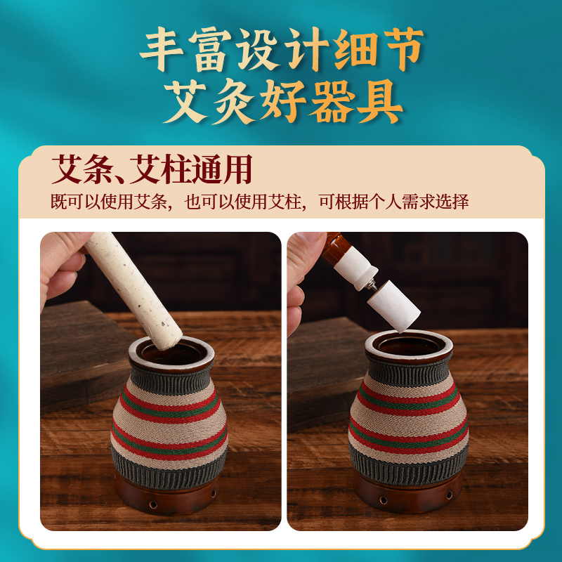 彩瓷艾灸罐陶瓷艾灸盒随身灸家用艾炙器具筒柱条艾条固定架刮痧杯