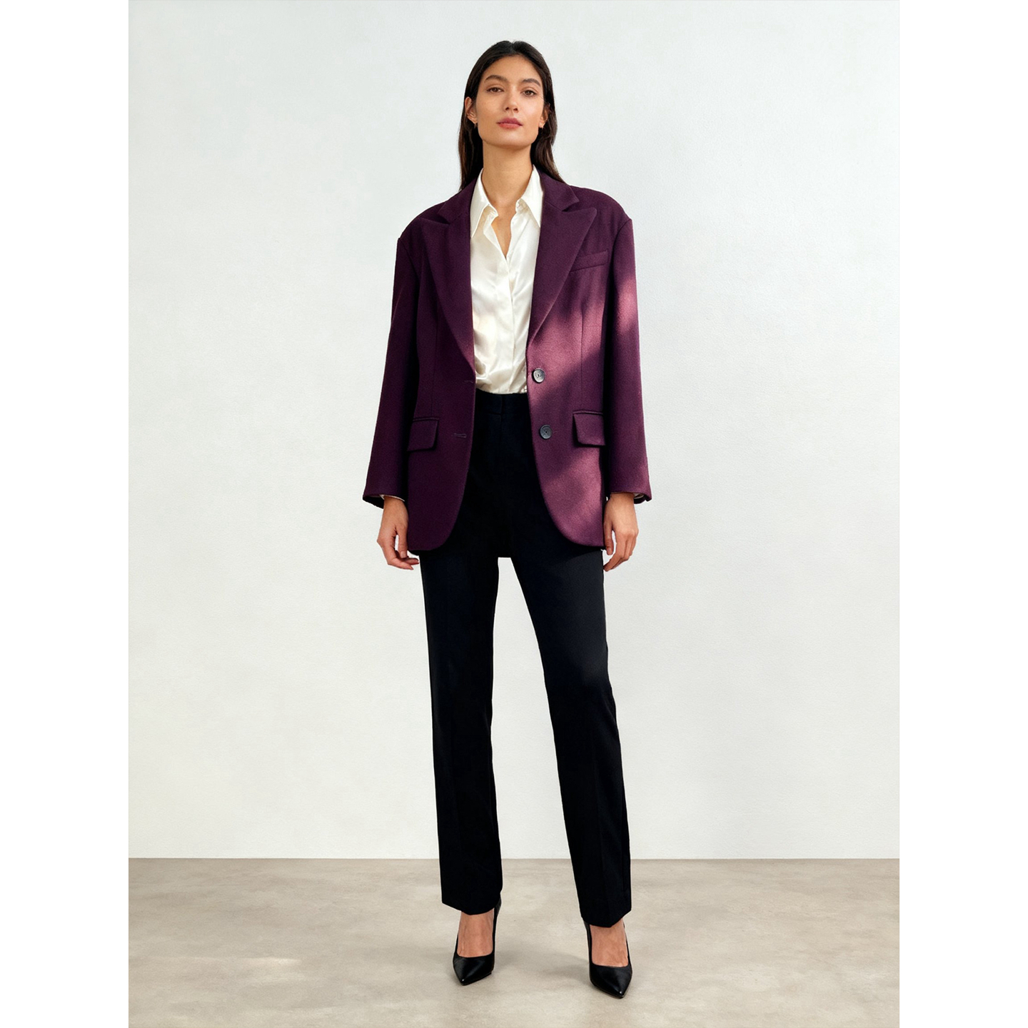 老钱风~羊毛呢西装外套女中长款宽松简约纯色落肩廓形大衣 秋冬 - EOEP设计师女装