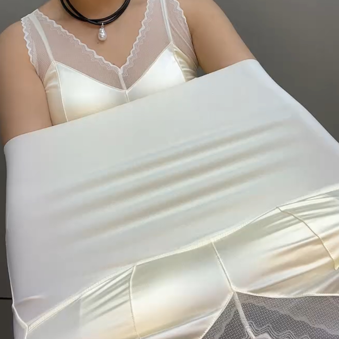 冰丝无痕缎面背心女吊带带胸垫文胸一体式蕾丝打底衫保暖上衣内搭 - 恋娅晴