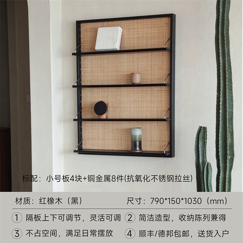 您的位置:他他商城  >   >  木纳家具实木墙上置物p架书架侘寂风客厅壁挂展示架藤编柚木悬挂
