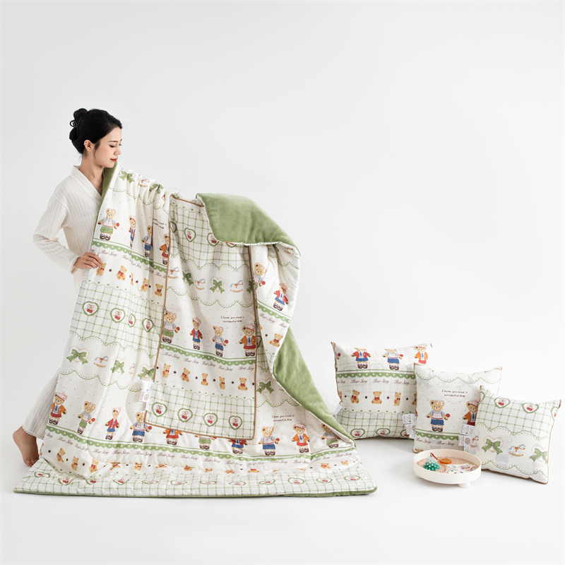 A类棉加绒 抗菌抱枕被子两用汽车靠垫办公室沙发午睡毯子空调被冬