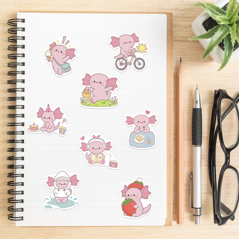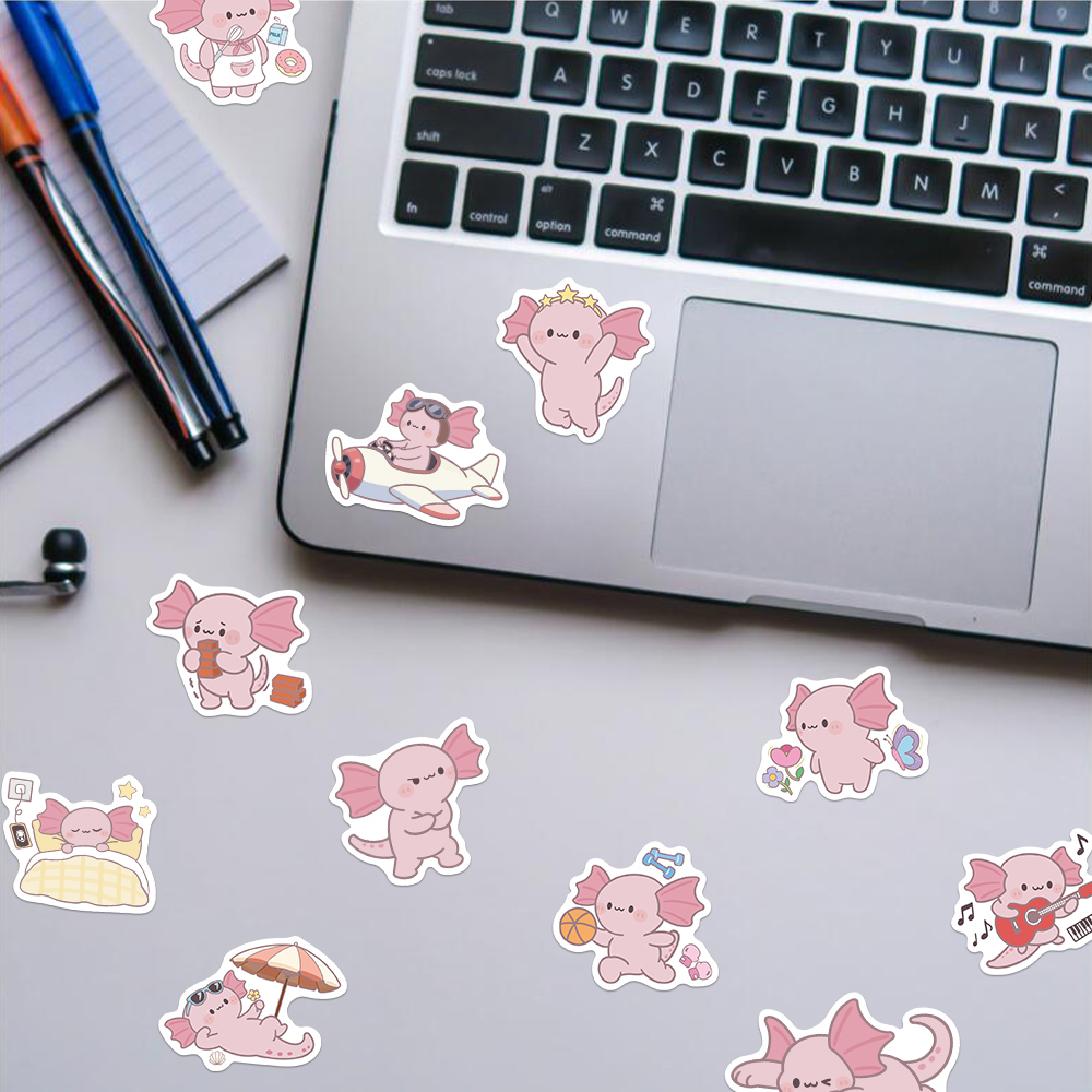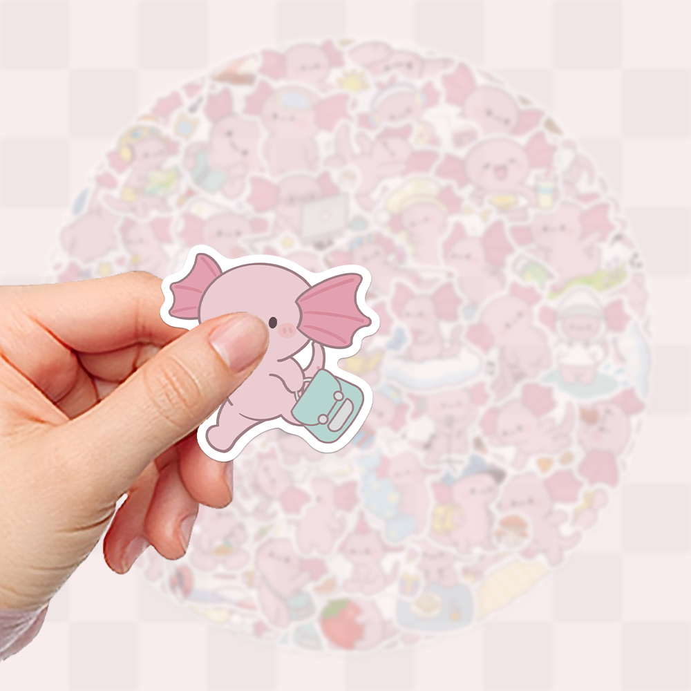 100张卡通二创蝾螈贴纸趣味手绘风儿童装饰手账桌面手机壳笔记本