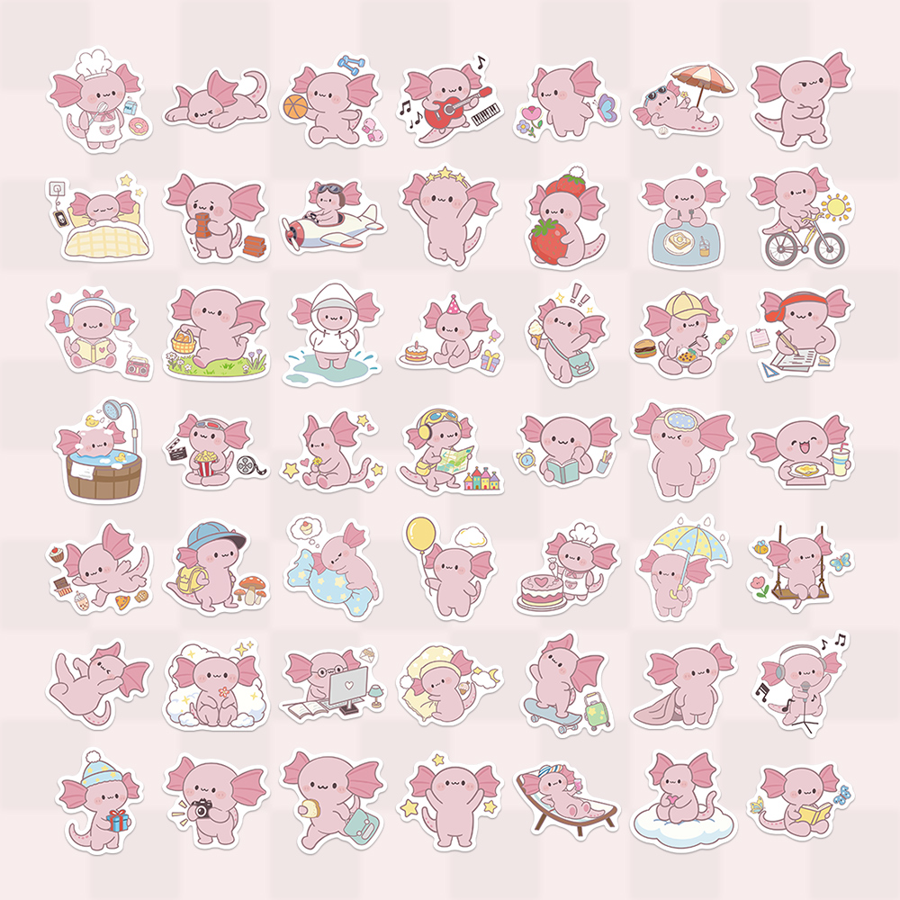 100张卡通二创蝾螈贴纸趣味手绘风儿童装饰手账桌面手机壳笔记本 - 贴啊贴啊