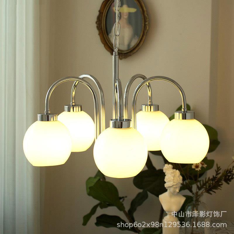 法式简约中古镀铬吊灯橘色玻璃民宿卧室灯中古风餐厅书房艺术灯具 - 墨染百货店5
