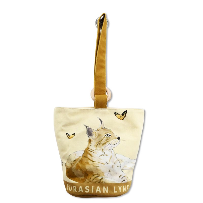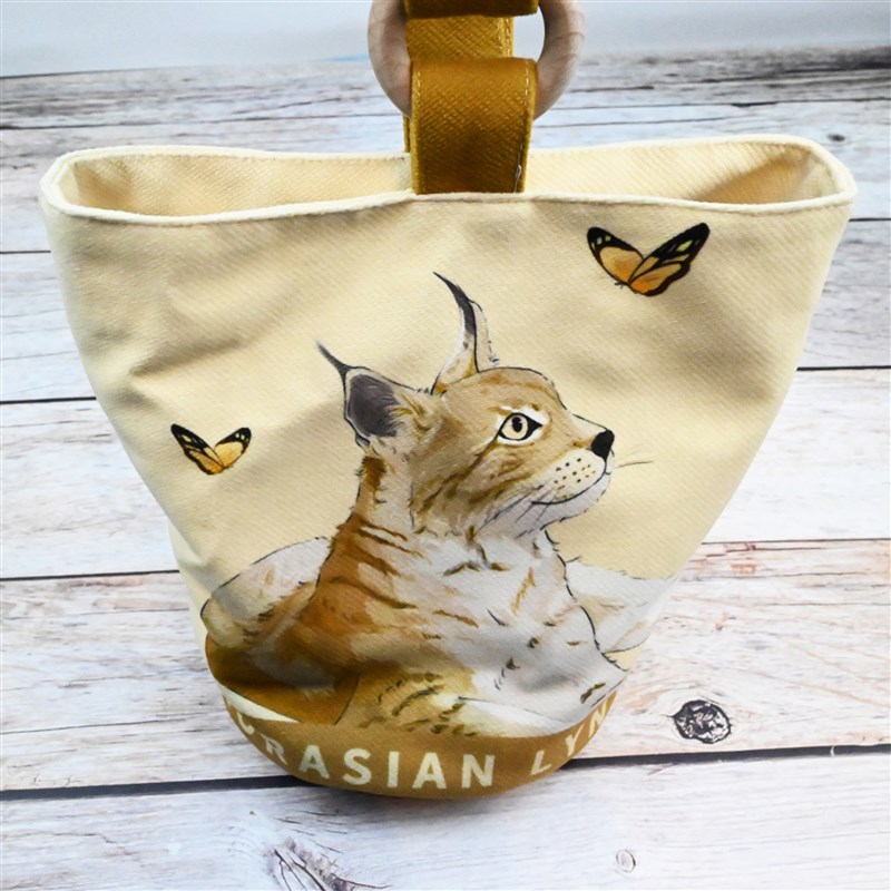 猞猁手绘可爱动物手提袋休闲帆布包时尚印花手提包V磁扣潮流水桶 - 谈听安旗舢店企业店