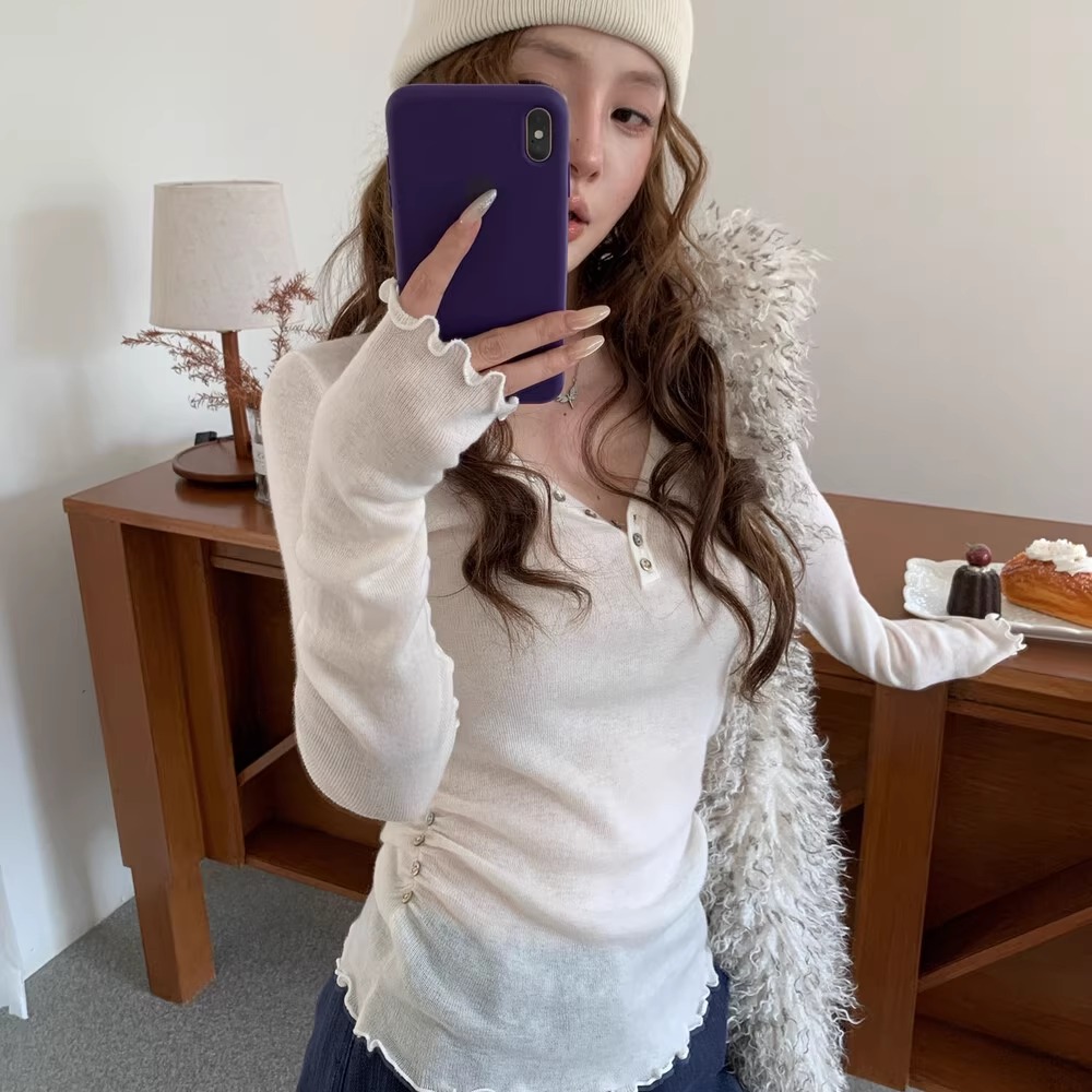 您的位置:他他商城  >  女装  >  HOLDER韩系2025冬季新款V领显瘦百搭贝壳扣保暖木耳边长袖毛衣女