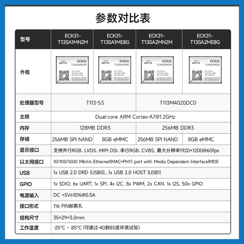 全国产全志T113-S嵌入式Linux核心板双核Cortex-A7+RISC-V工控