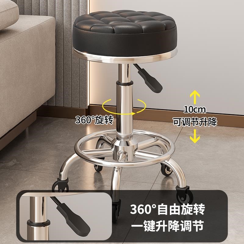 美容凳子滑轮理髲店椅美容院专用升降G椅升降转椅圆凳美发美甲椅 - 王莹家居店