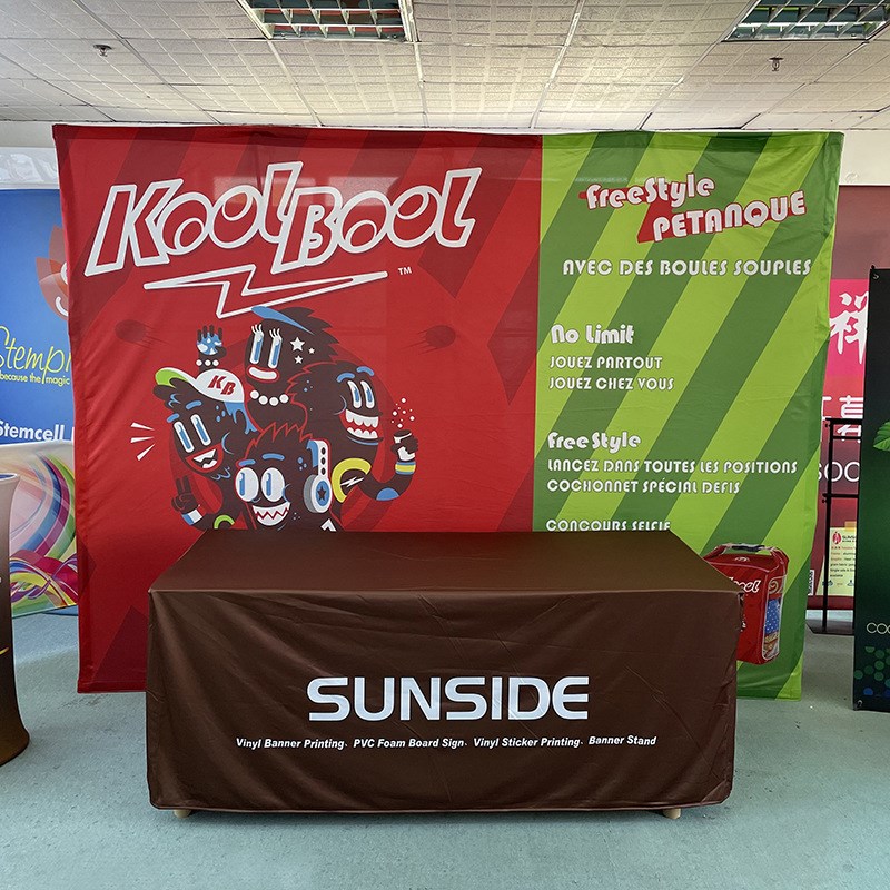 展会活动舞台场景搭建热转印经编布商务G会议桌布印彩色图案LOGO