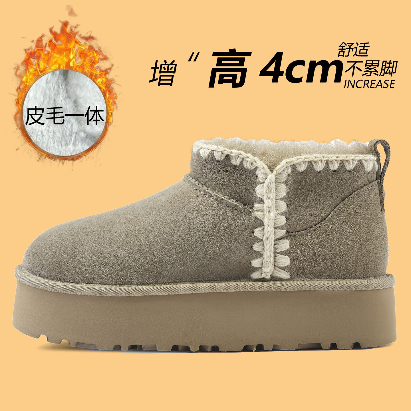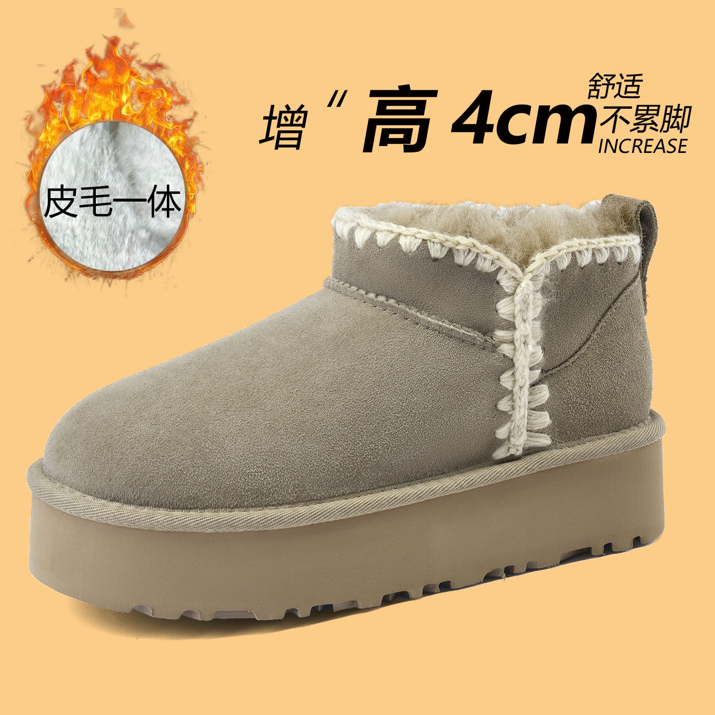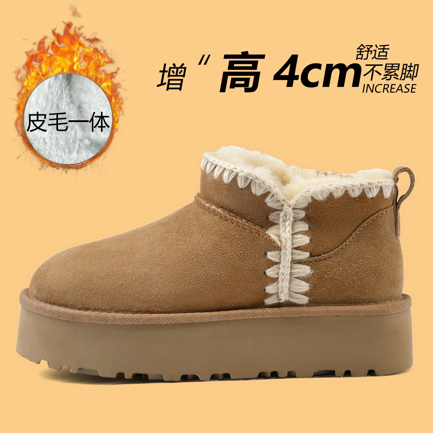 雪地靴女款2025新款冬季全羊毛皮毛一体鞋一脚蹬棉鞋女厚底雪地靴 - 拾光手工真皮女鞋