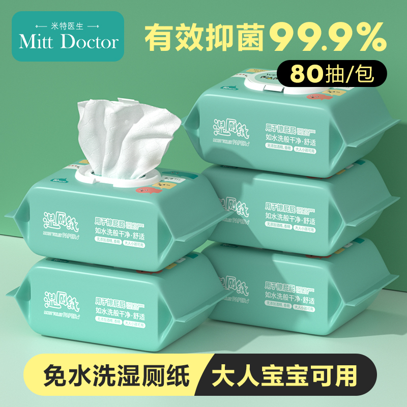 米特医生湿厕纸家庭实惠装男女士专用擦屁屁纯水湿厕巾马桶可冲散