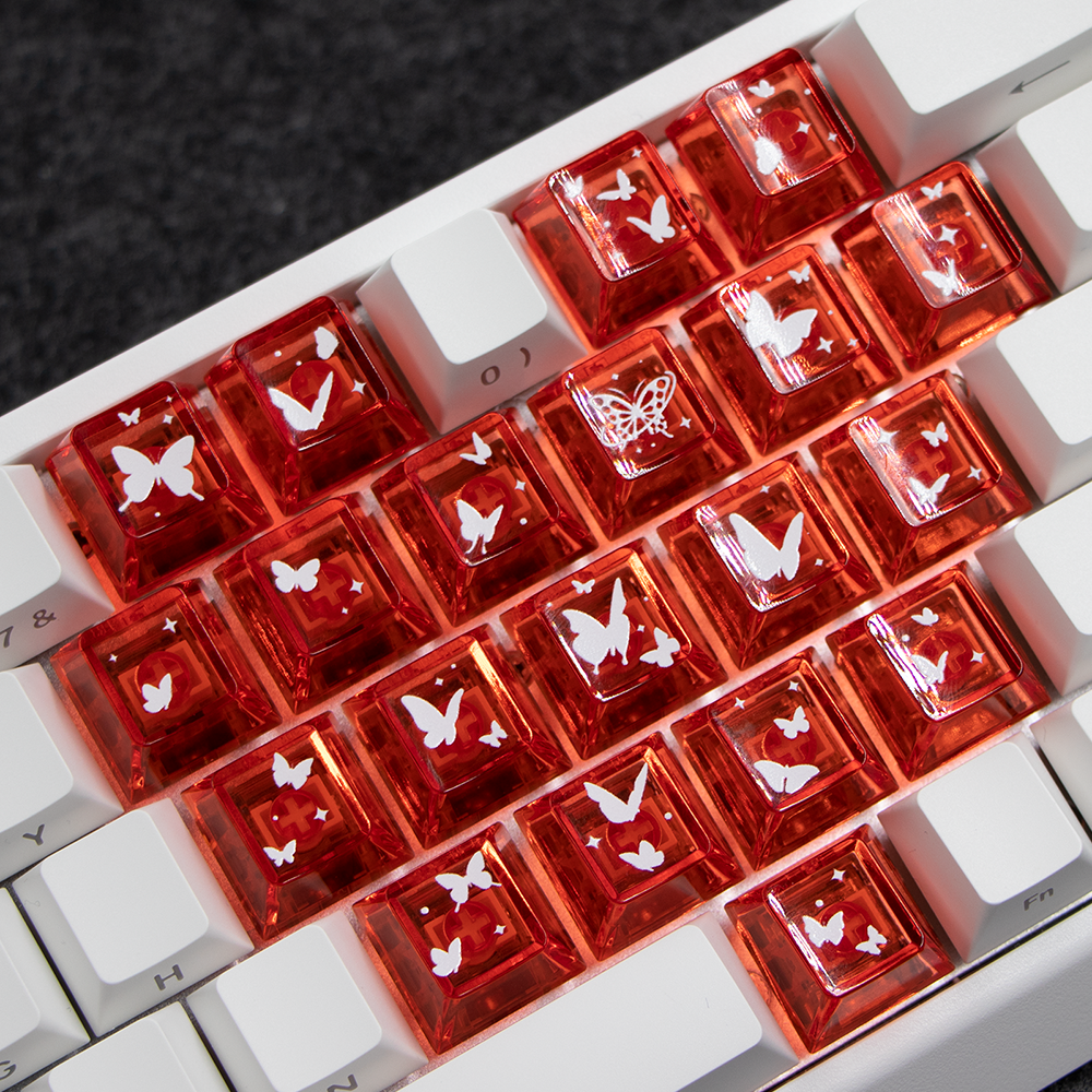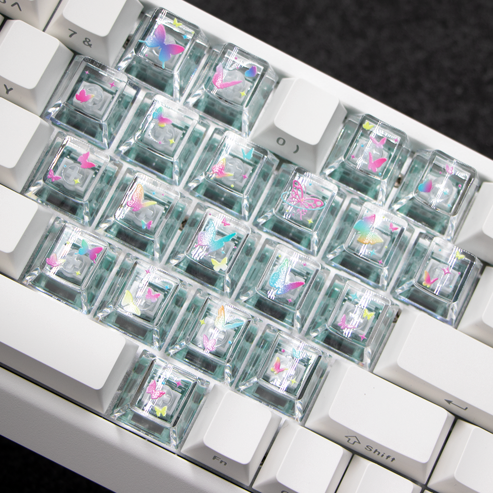 蝴蝶图案爱心键帽原厂高度透明PC材质客制化diy素材适配磁轴键盘 - 山猫科技