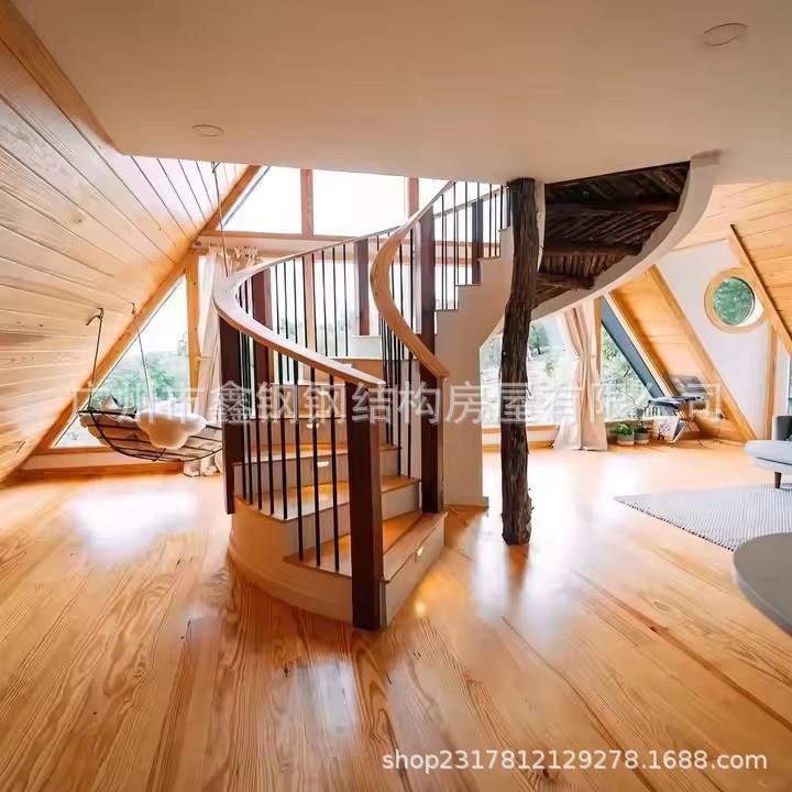 防腐木休闲度假木屋别墅民宿轻钢房景观度假村三角屋移动房阳光房