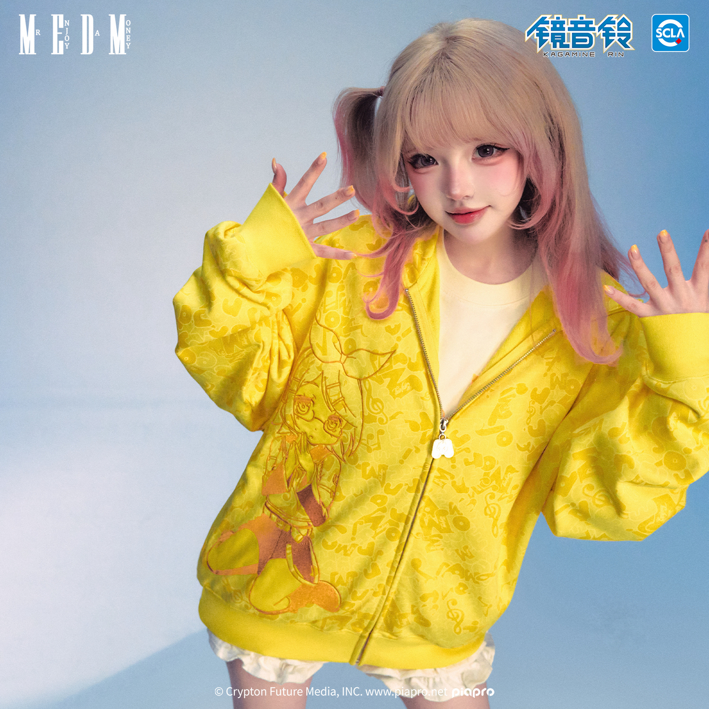 MEDMx初音未来满印迷彩休闲拉链帽衫女卡通风情侣开衫连帽卫衣秋 - MEDM
