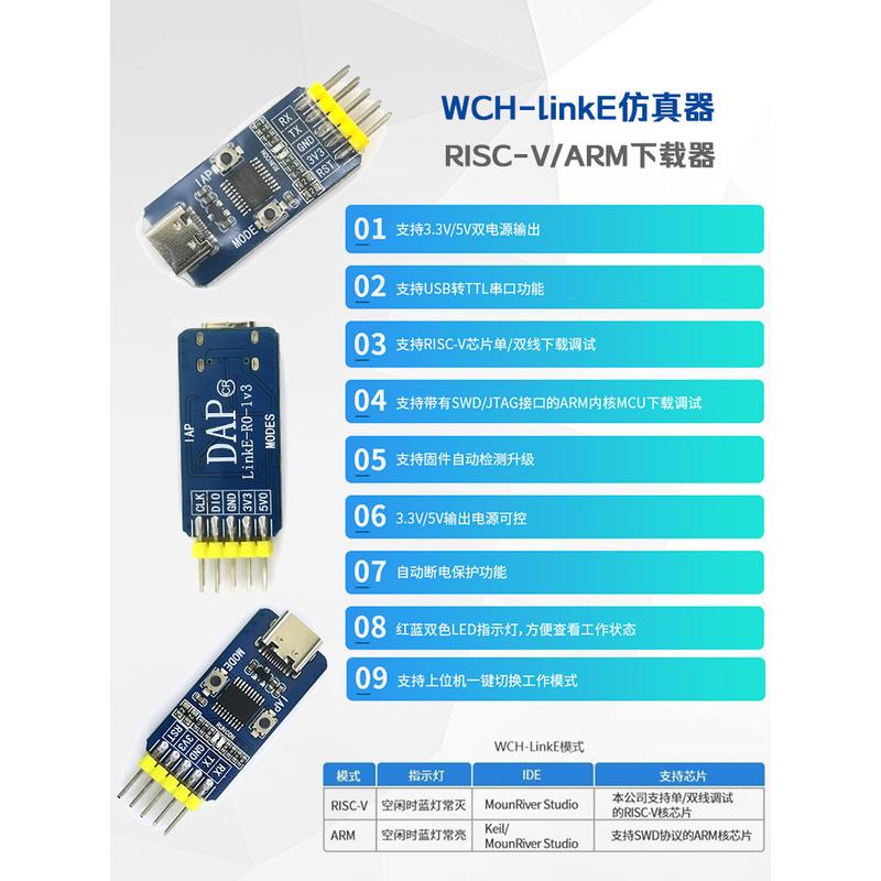 WCH-LinkE下载器调试器WCHLink仿真器RISC-V支持串口支持WCH所有