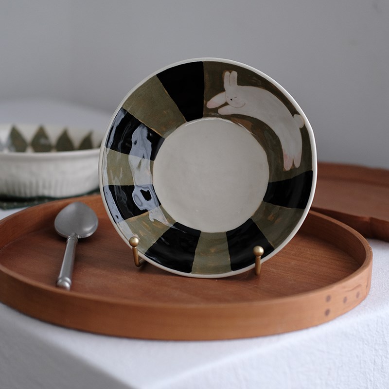川谷日式兔子和熊深碟盘子家用陶瓷餐具高颜值餐具 - 鹏誊企店