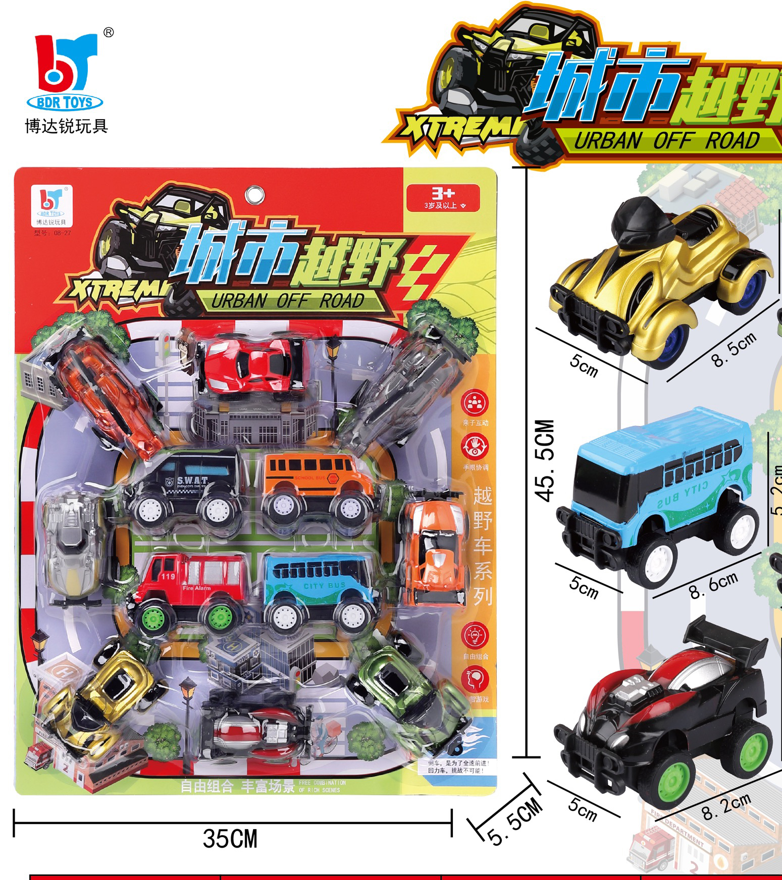 博达锐回力建筑车建筑儿童玩具车回力惯性建筑工程队板装工程