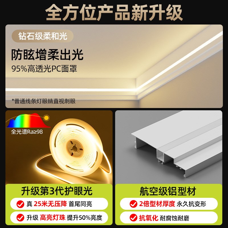 免吊顶客厅石膏顶角线型灯明装双眼皮一H体化铝合金线形灯线性灯