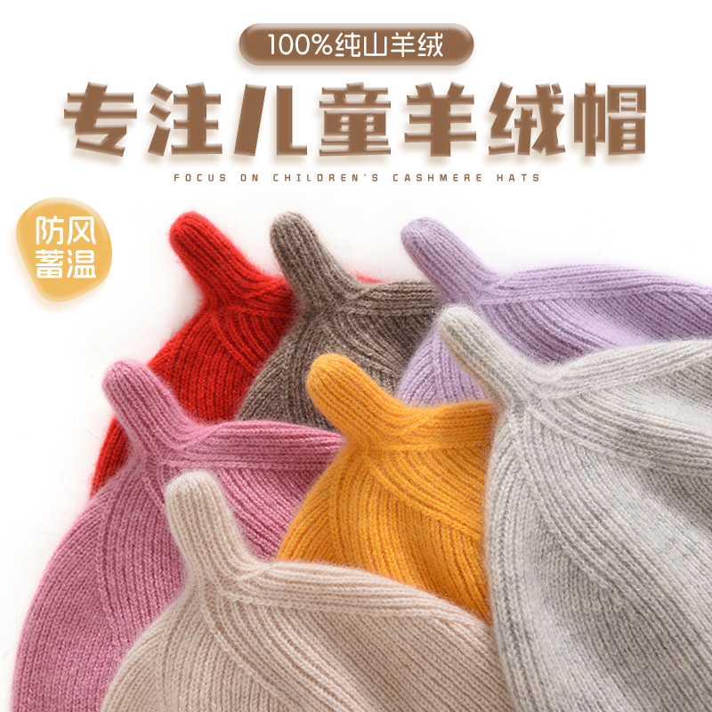 儿童款!秋冬100%山羊绒帽子男女童针织防寒保暖婴幼儿超萌毛线帽 - 高端羊绒服饰厂家批发直销