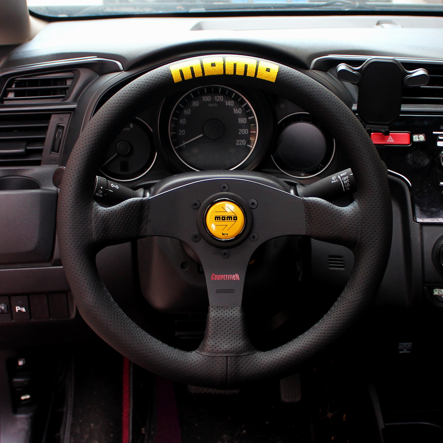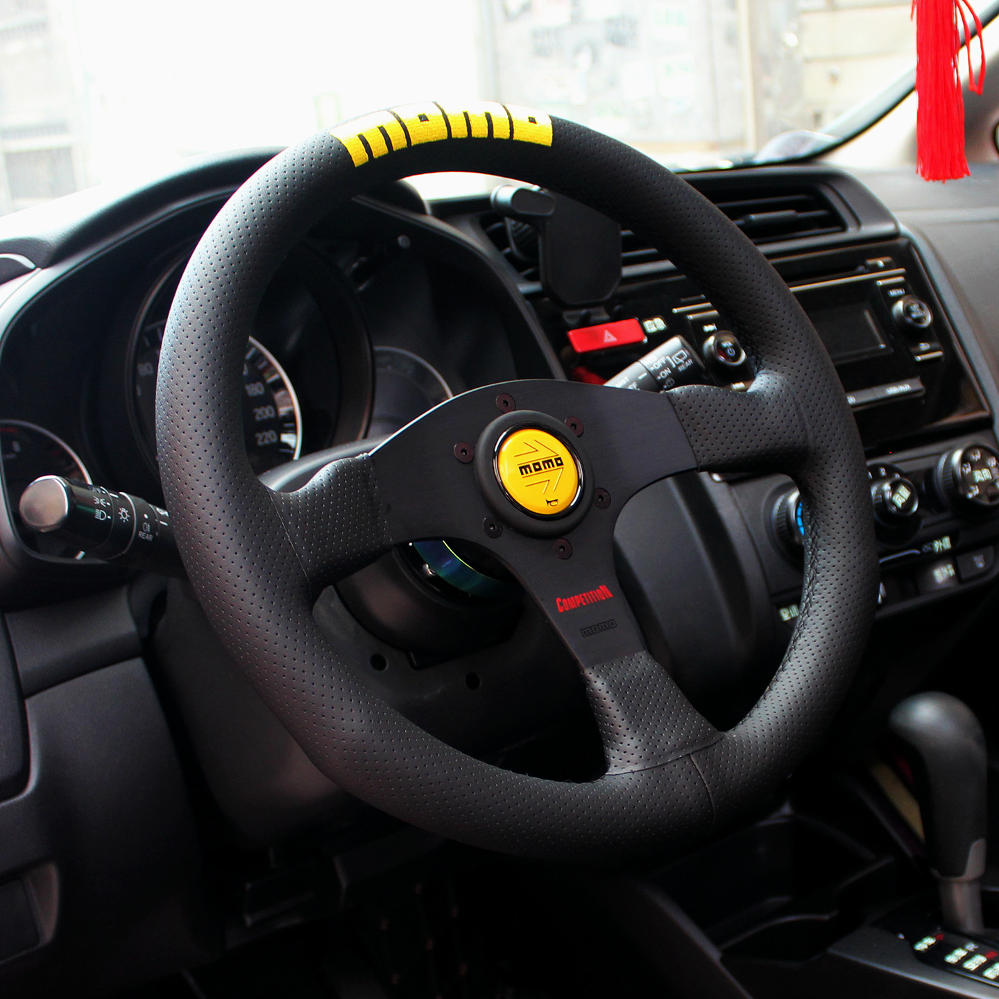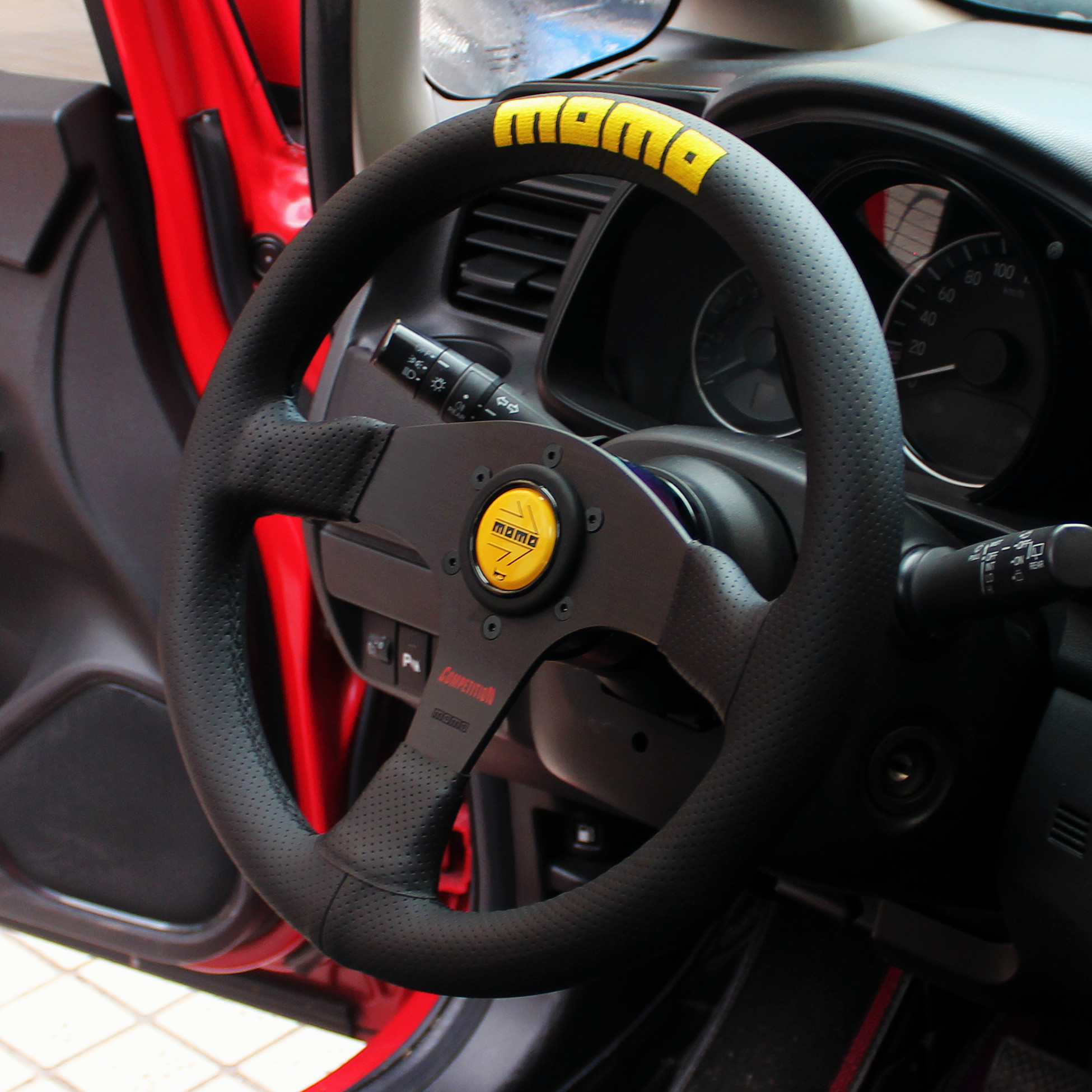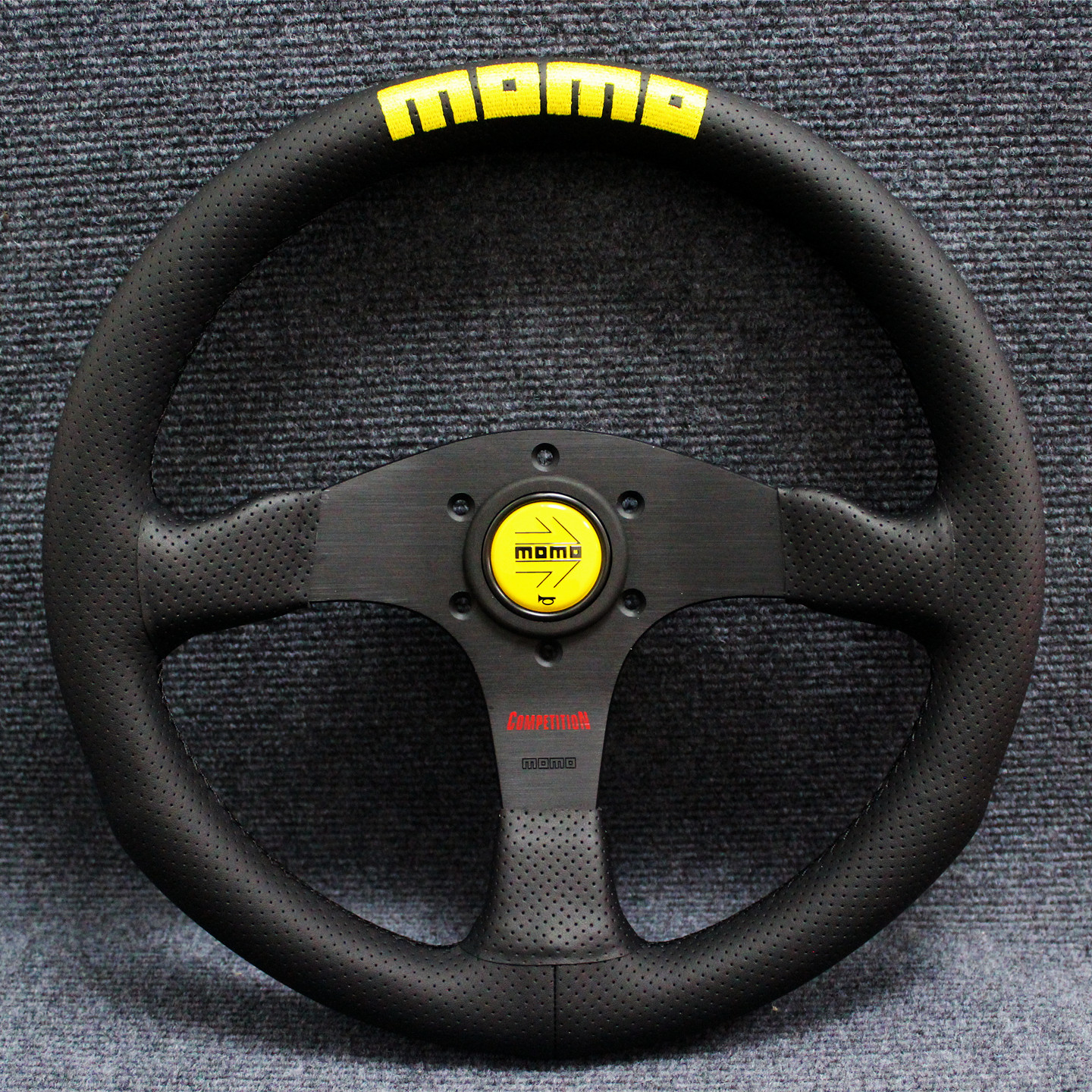 14寸momo真皮刺绣方向盘 Competition经典针孔皮改装通用快拆钛盘 - 乐儿车改