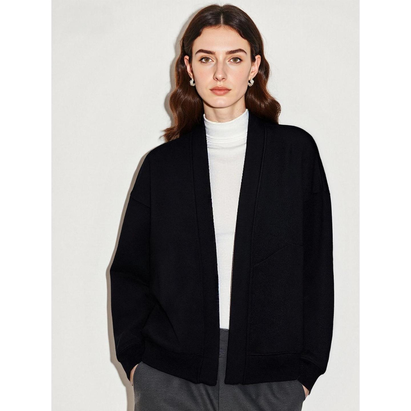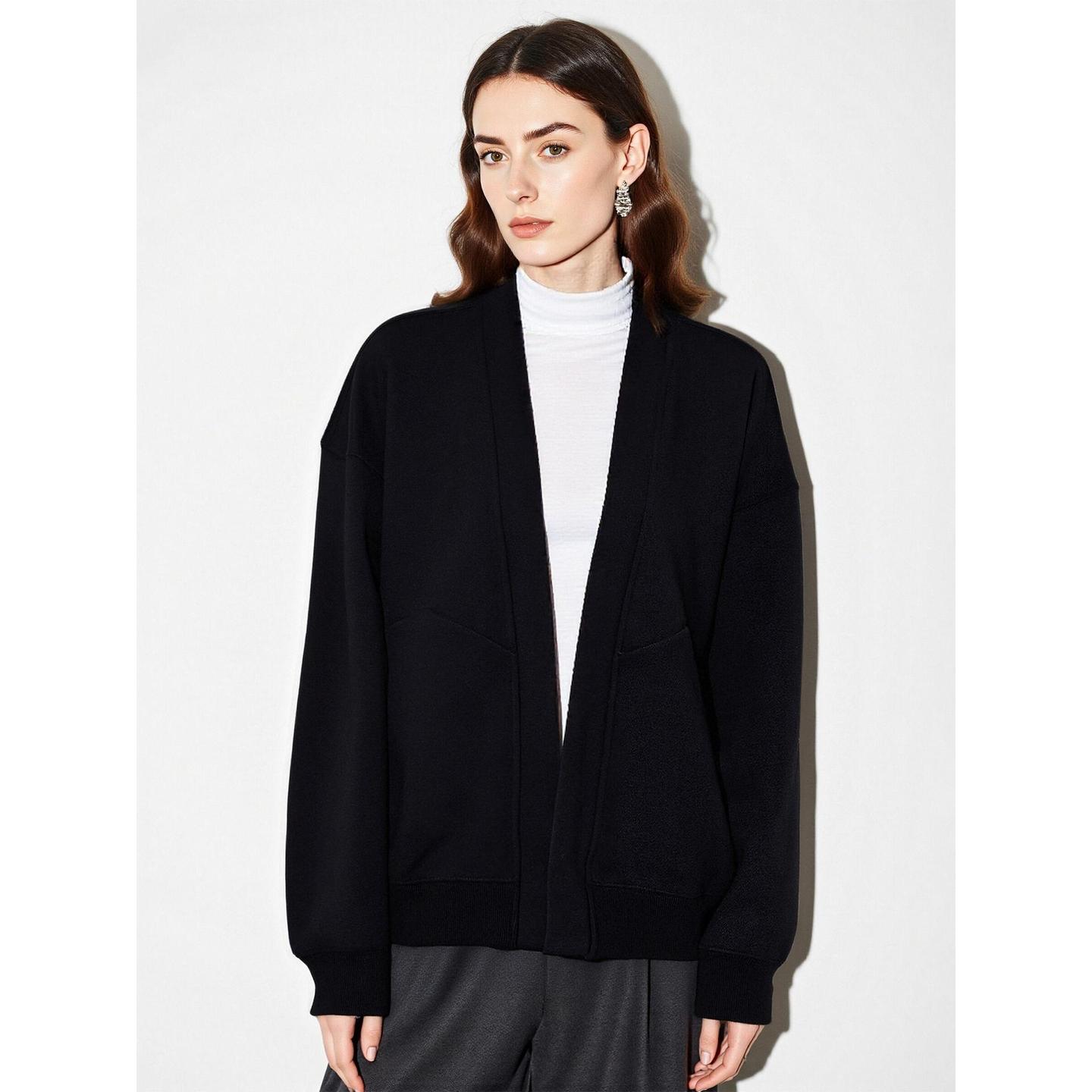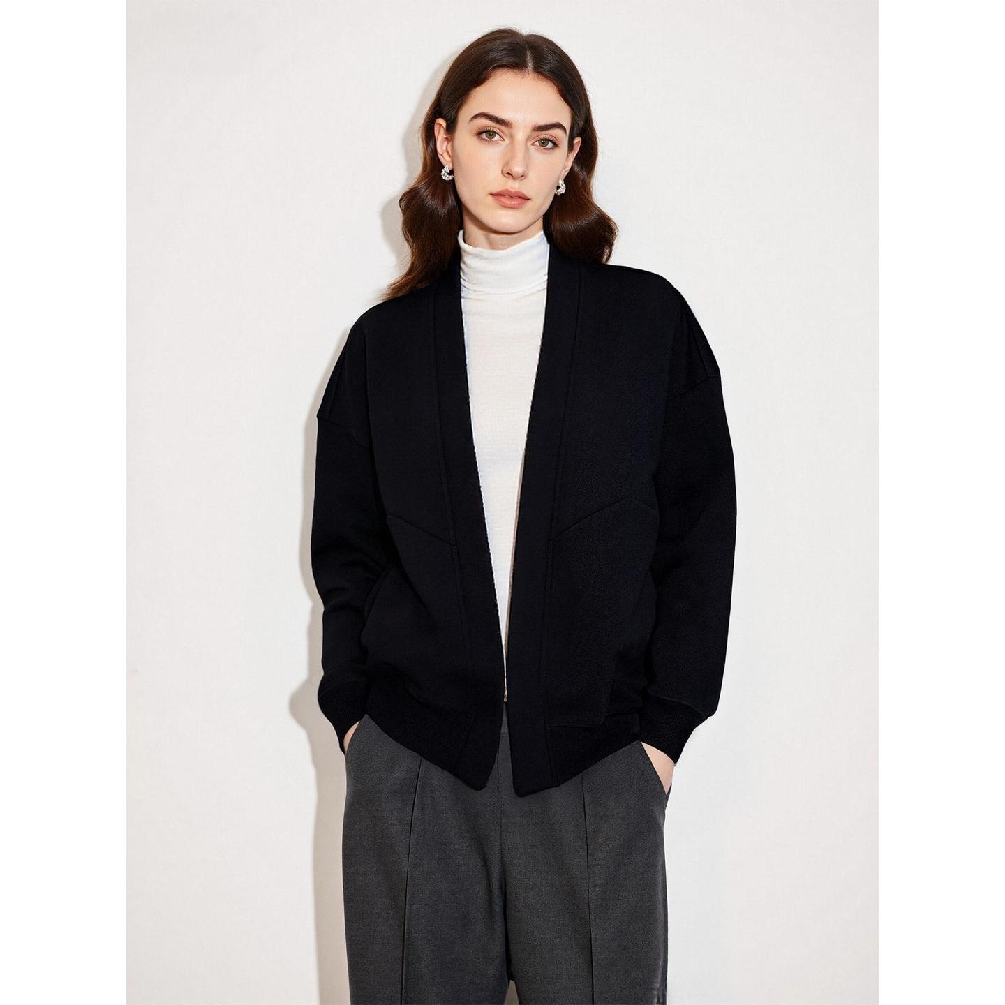 Basic House/百家好高级感气质黑色慵懒风无领卫衣开衫外套女秋冬 - BASICHOUSE官方旗舰
