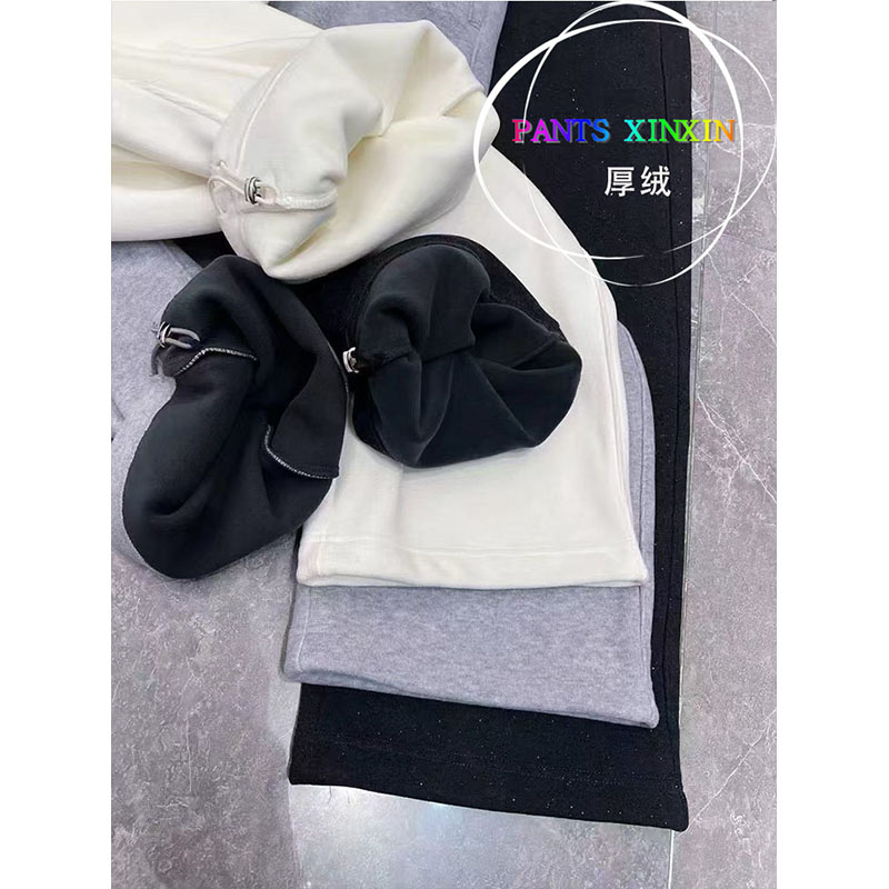 2025年冬季高弹力松紧腰显瘦束脚裤镶晶厚绒休闲阔腿长裤女243525