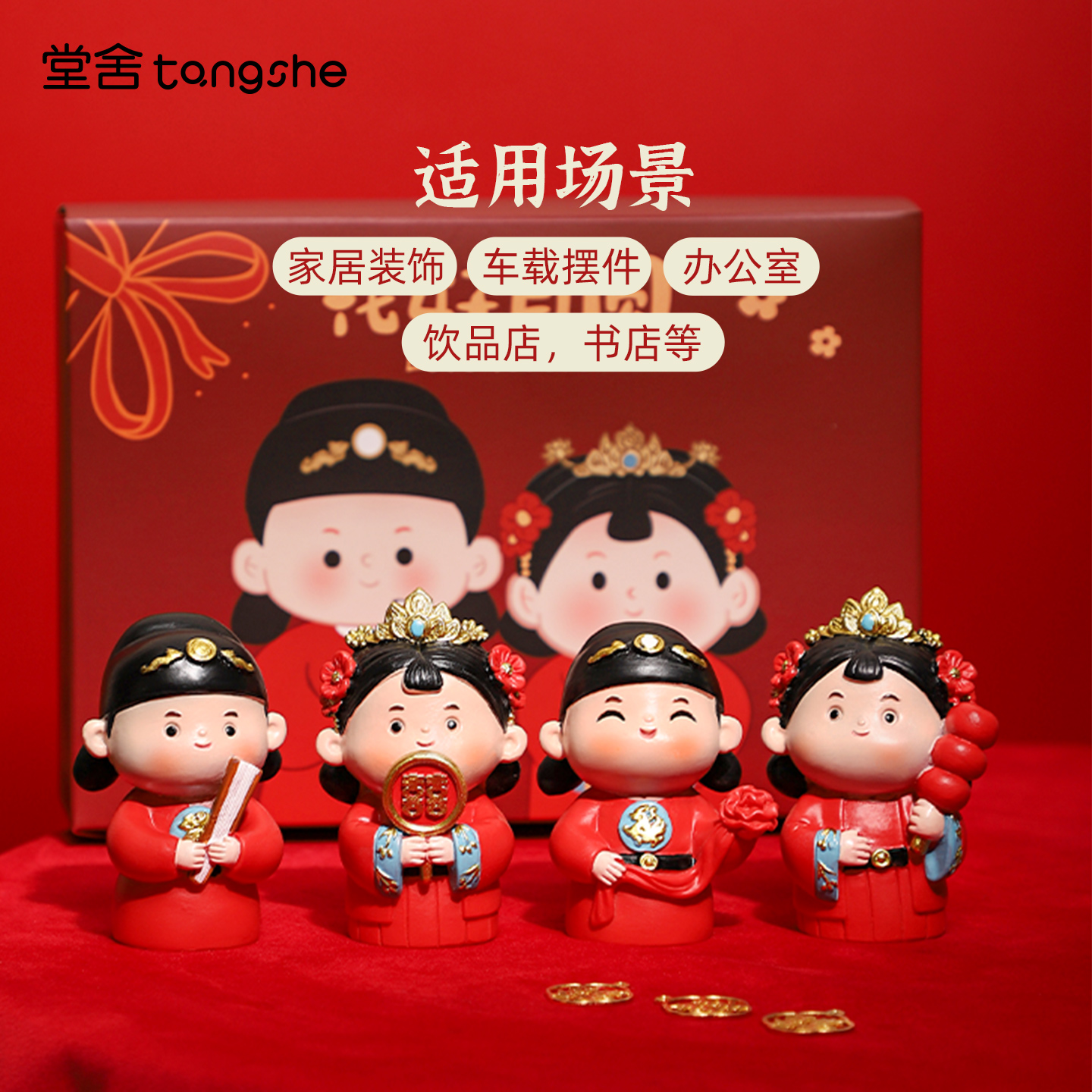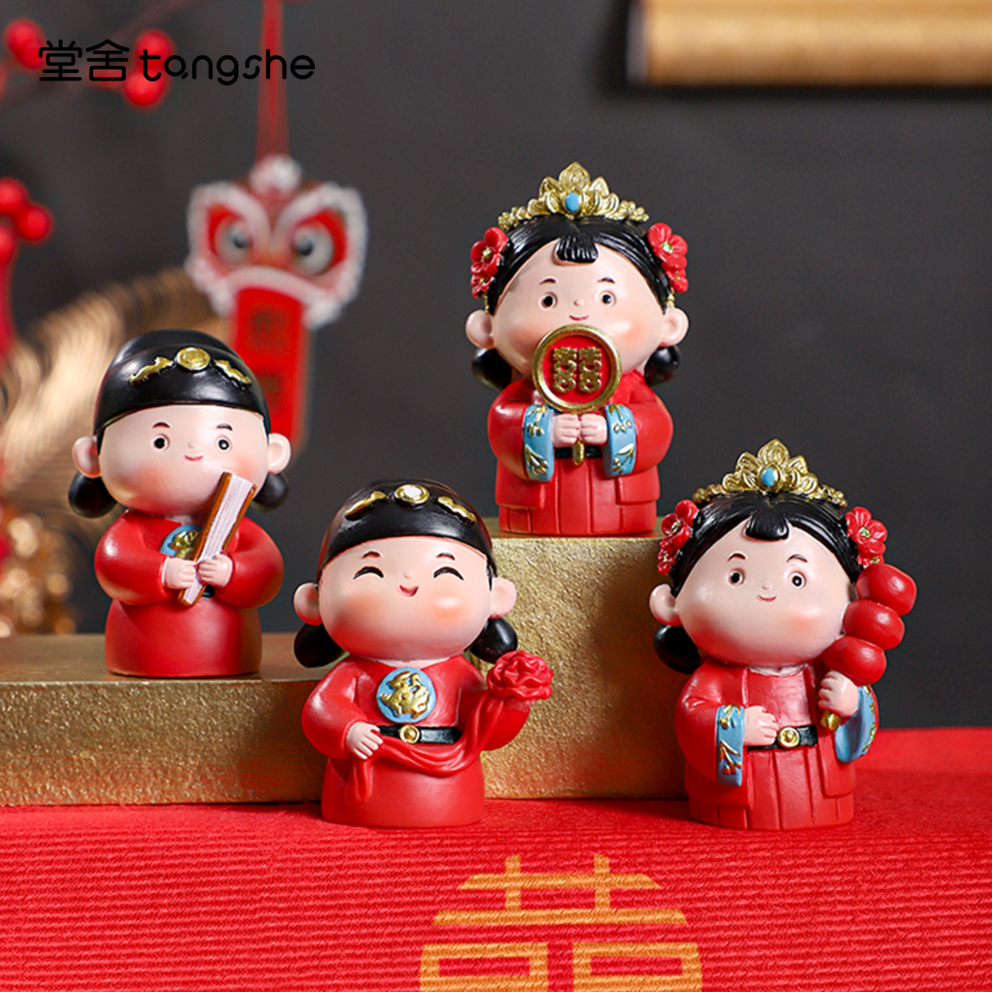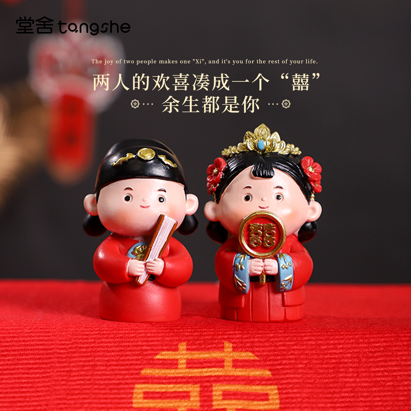 花好月圆小摆件中式婚房布置喜庆娃娃装饰新婚礼物送新娘闺蜜订婚 - 堂舍家居