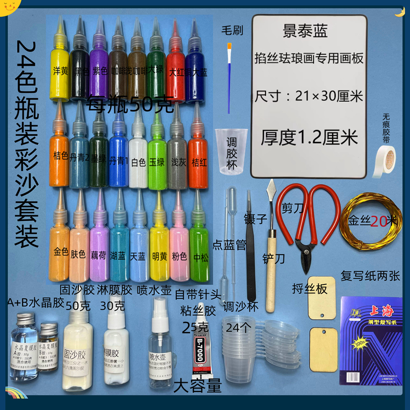 您的位置:他他商城  >  配饰  >  景泰蓝金丝彩沙画DIY制作工具掐丝珐琅学校手工课全套材料包套装