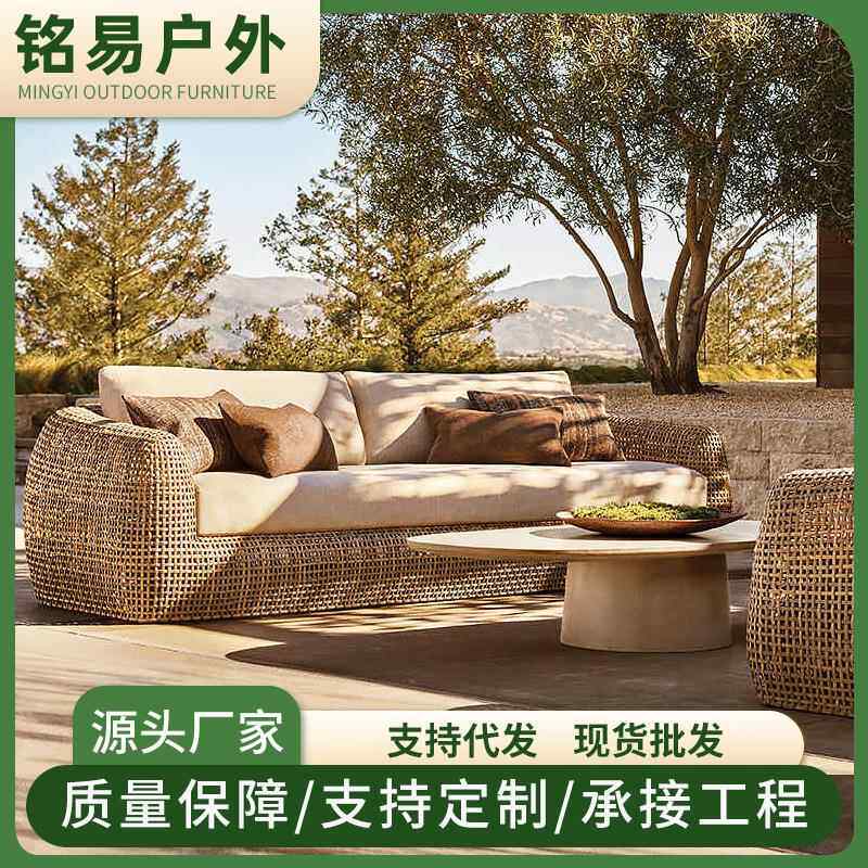 户外闲藤编沙休发发别墅庭院防水防晒花园酒店民宿藤阳光332房沙 - 业麦工厂