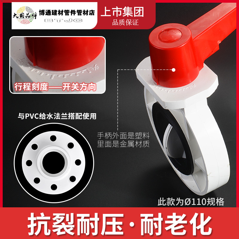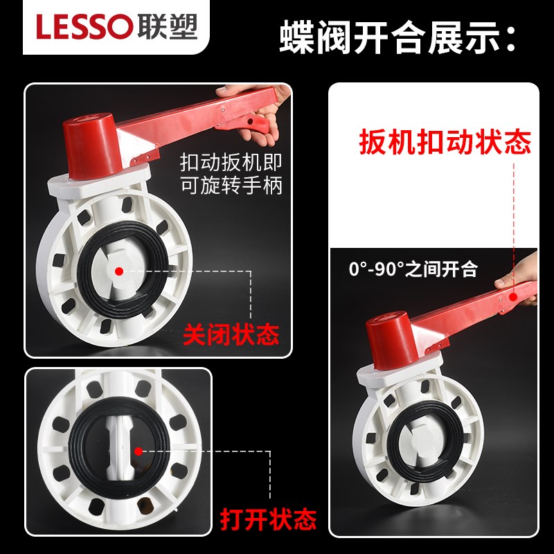 LESSO联塑PVC白给水管蝶阀 碟阀门开关总制手把式开关110 160 200 - tb4512526303
