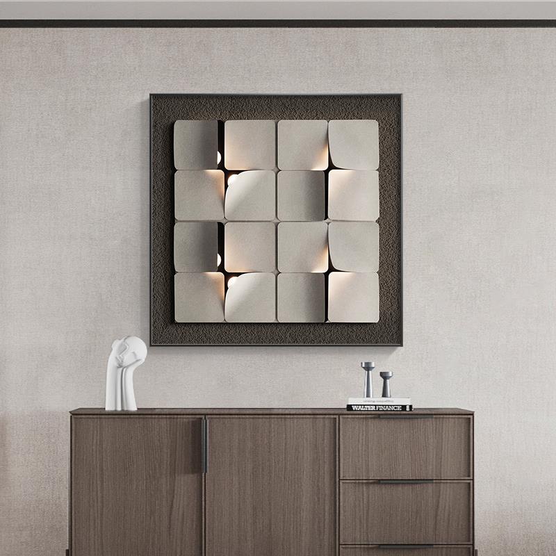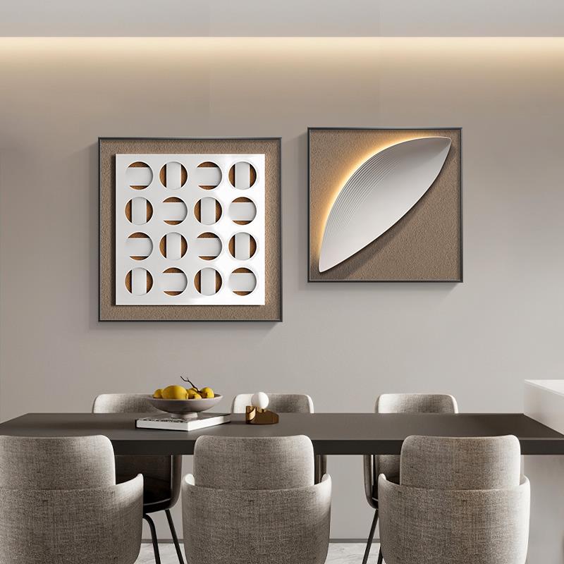现代简约几何餐厅装饰画高级感3d立体饭厅挂画正方形两联客厅壁画