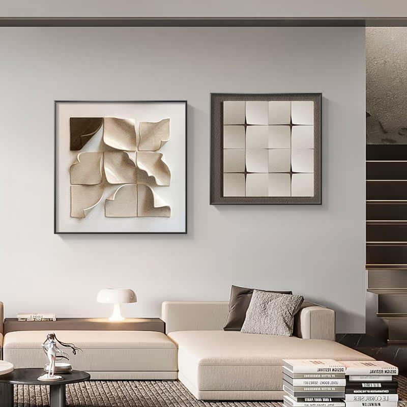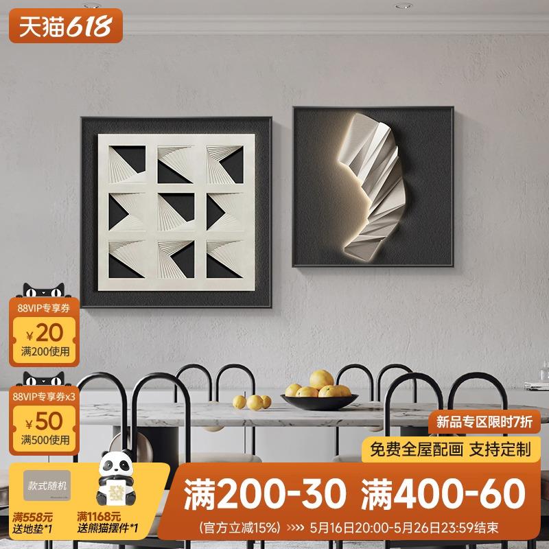 现代简约几何餐厅装饰画高级感3d立体饭厅挂画正方形两联客厅壁画 - 金荣百货官营店