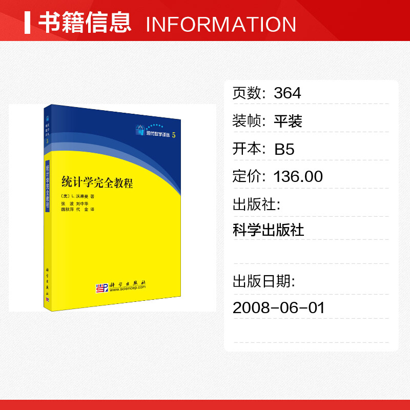 统计学完全教程 (美)L.沃塞曼 著 张波 等 译 统计 审计专业科技 新华书店正版图书籍 科学出版社 - 新华在线图书专营店