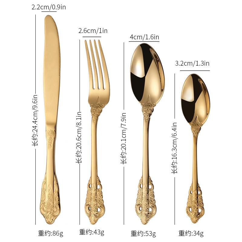 不锈钢刀叉勺金色复古宫廷风西餐餐具牛排刀叉欧式浮雕风定制 - 集博旗舰店