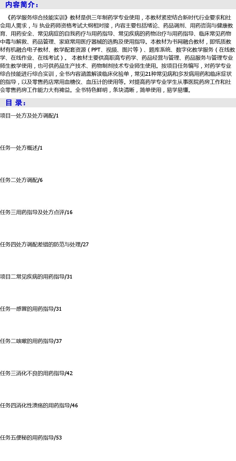【2023新书】药学服务综合技能实训 方应权,李新莉,付伟 高职高专药学药品经营与管理药品服务与管理专业教材书籍 9787568090070
