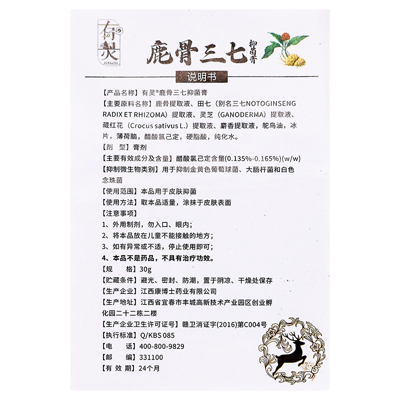 有灵鹿骨三七抑菌膏30g植物草本精华成人中老年人外用三七抑菌膏 - 德安堂保健用品专营店