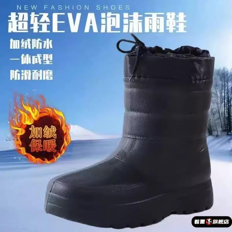 冬季加绒加厚雨鞋EVA轻便防滑防水鞋加厚鞋底防寒保暖雪地靴男 - 着墨旗舰店