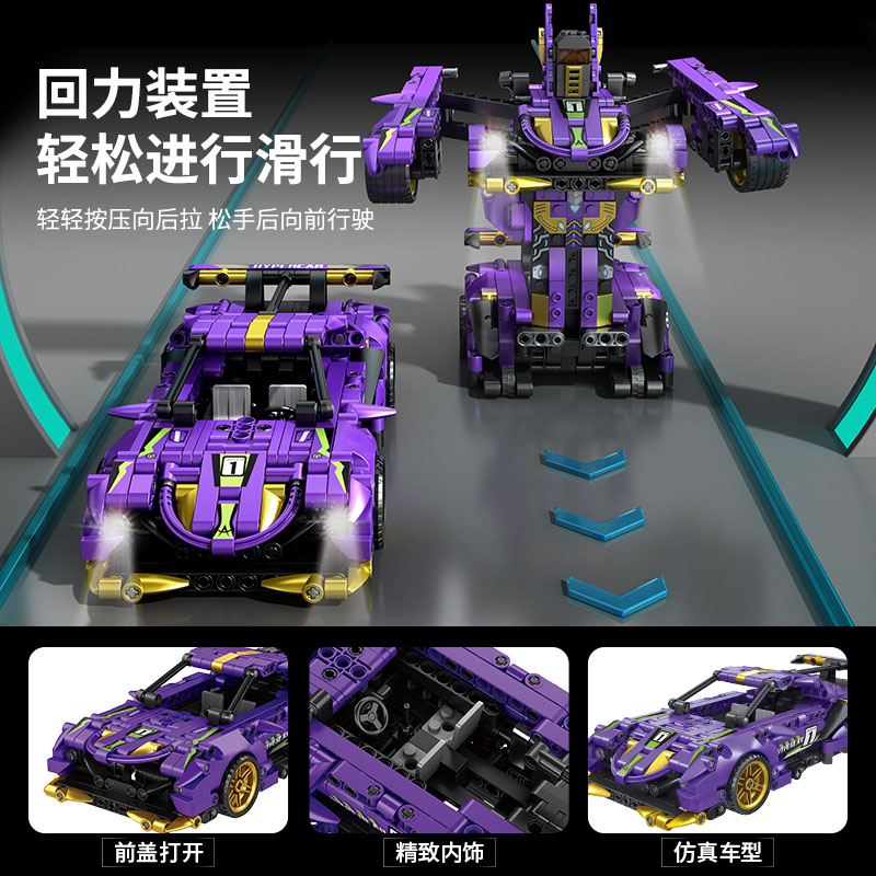 中国产回力汽车模型积木益智拼装紫牛跑车玩具变形机器人生日礼物