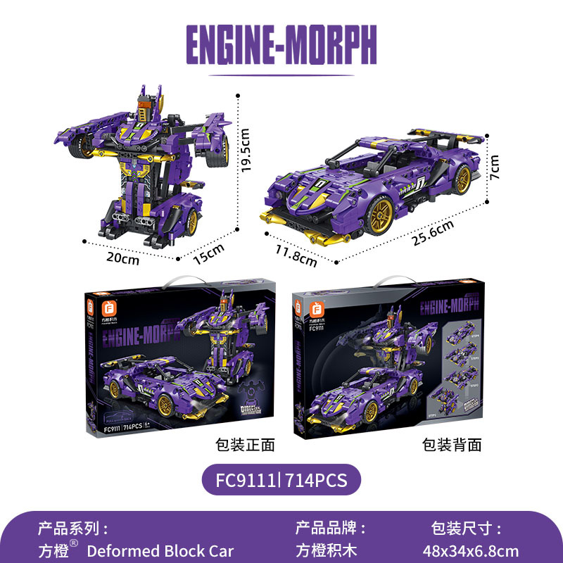 中国产回力汽车模型积木益智拼装紫牛跑车玩具变形机器人生日礼物 - 方橙旗舰店